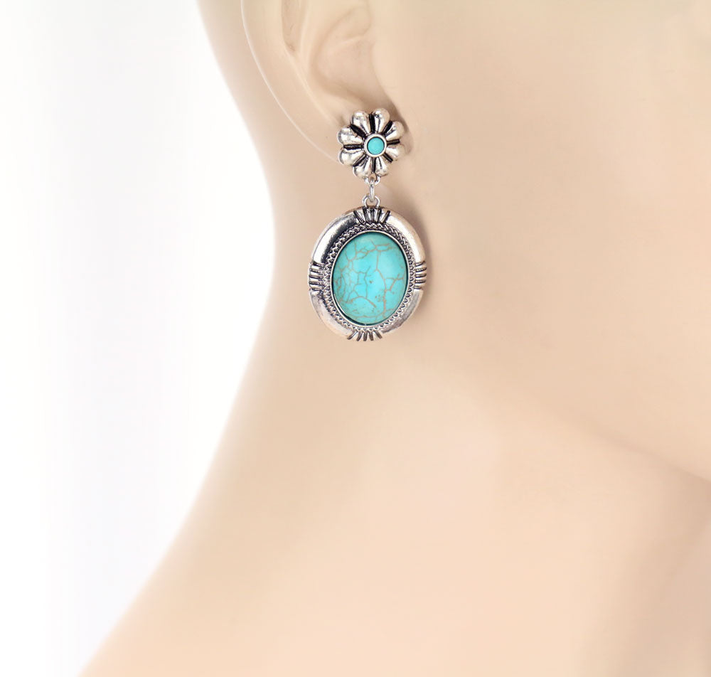 Zachary Flower Post Oval Drop Fashion Earrings - Turquoise
