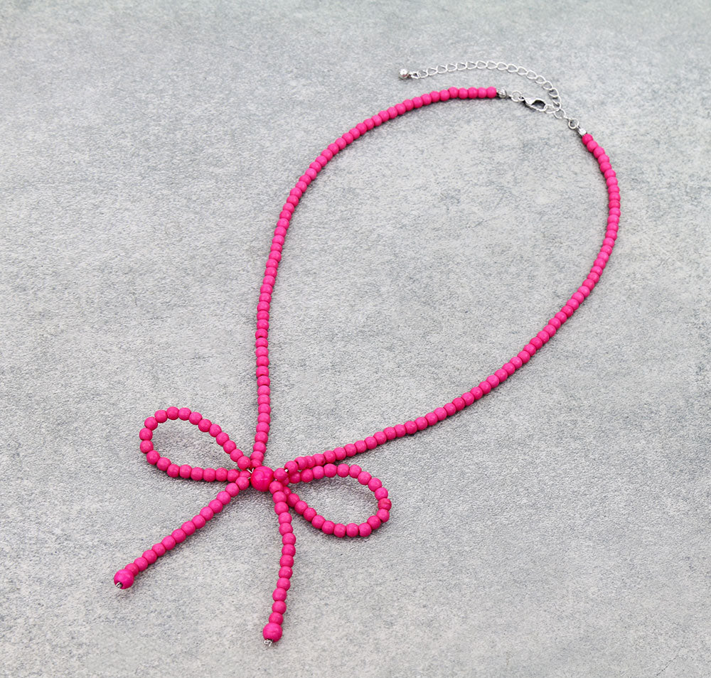 Revel Fashion Color Bead Bow Necklace - 18"