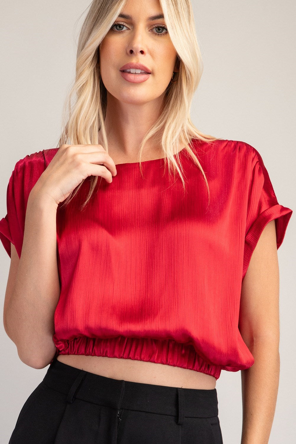 Turn heads in our Fresno Crop Top, featuring a lustrous satin finish and shimmery appearance. The elastic bottom guarantees a secure fit while adding a touch of playfulness to any outfit. Available in bold shades of purple or burgundy. (Seriously, it's a must-have!)