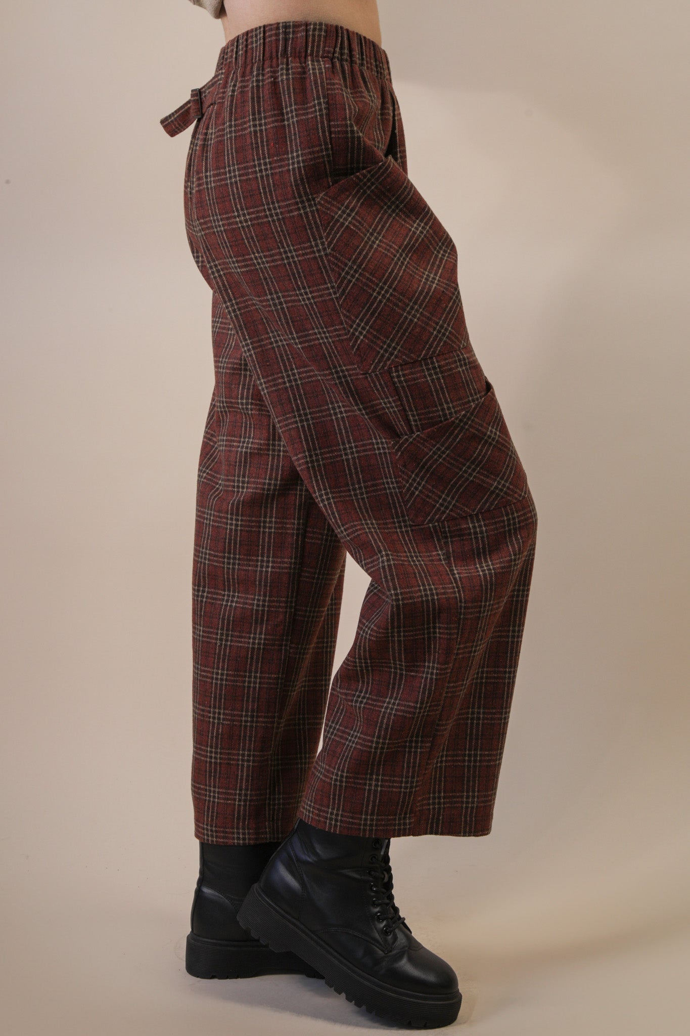 Elevate your casual wardrobe with these Plaid Wide Leg Cargo Pants, designed for comfort and style. Featuring an elastic waist for a flexible fit, practical side pockets, and a sleek back slider detail, these pants blend function with fashion effortlessly. Crafted from 100% polyester, they offer durability and easy care while the wide leg cut provides a flattering silhouette. Perfect for a laid-back yet trendy look that moves with you throughout your day.