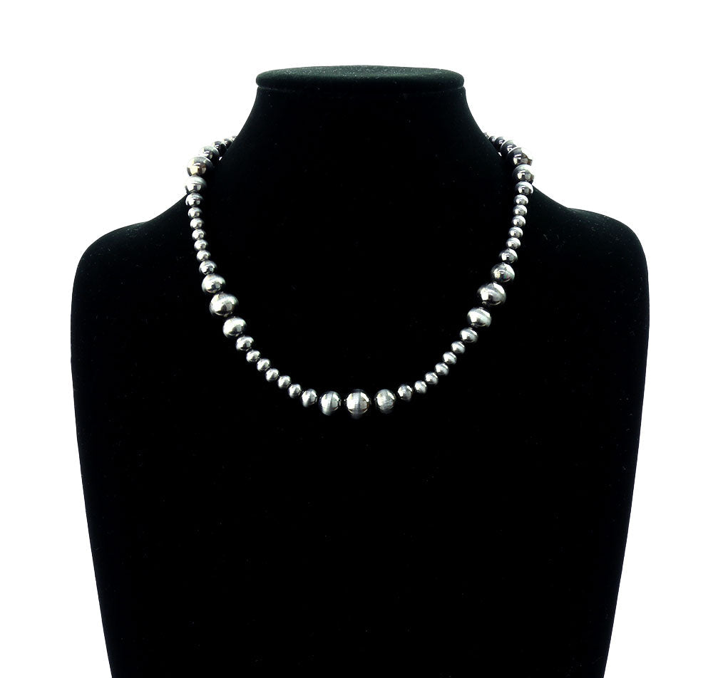 Henton Varied Silver Bead Necklace - 18"