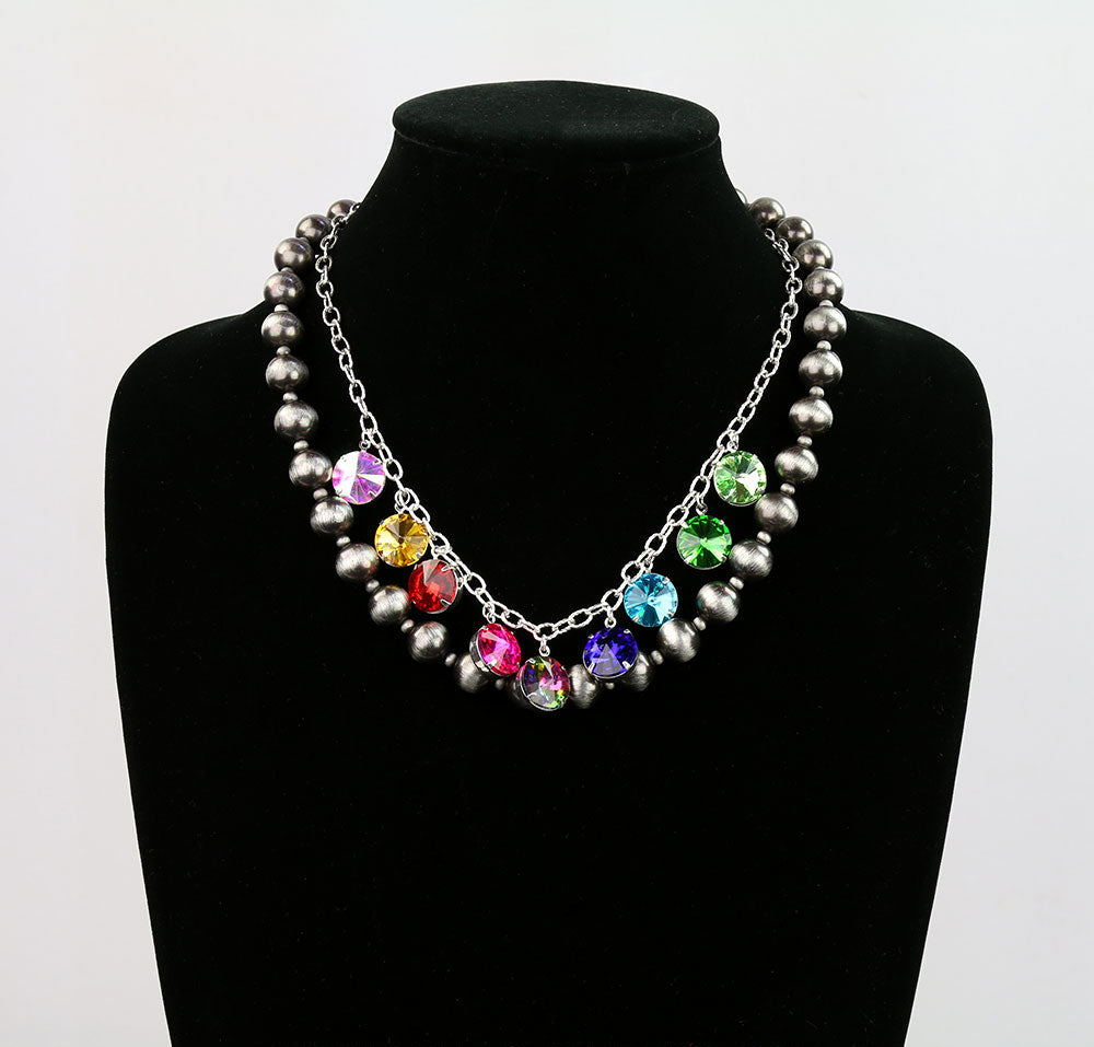 Light Show Double Strand Silver Bead & Chain Rhinestone Necklace - Multi