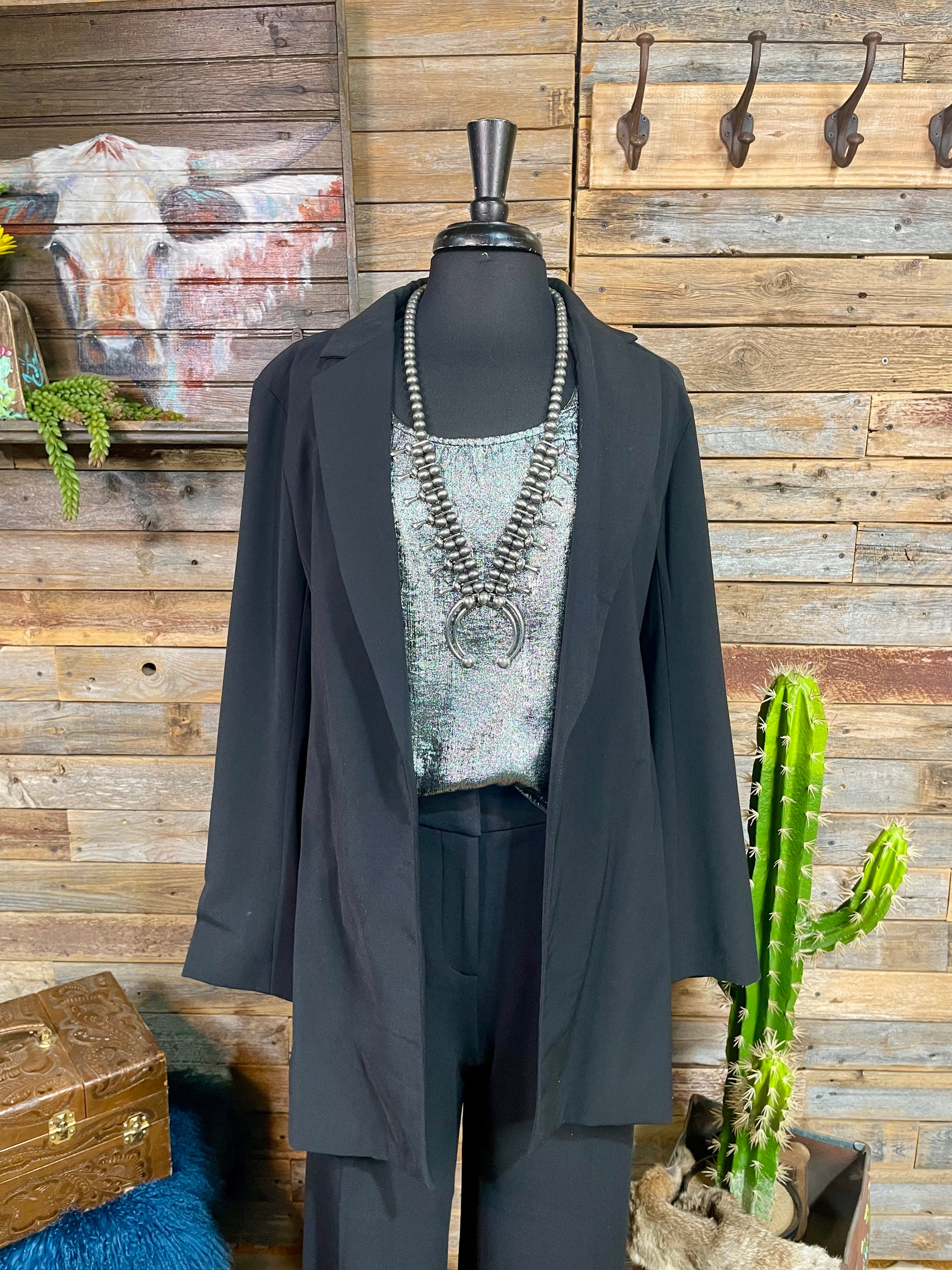 Elevate your evening attire with our Jasmine Tie Waist Dinner Blazer. This satin lined, collared jacket adds a touch of sophistication to any night out, while the tie waist ensures easy wear and a flattering fit. Perfect for making a statement with effortless elegance.