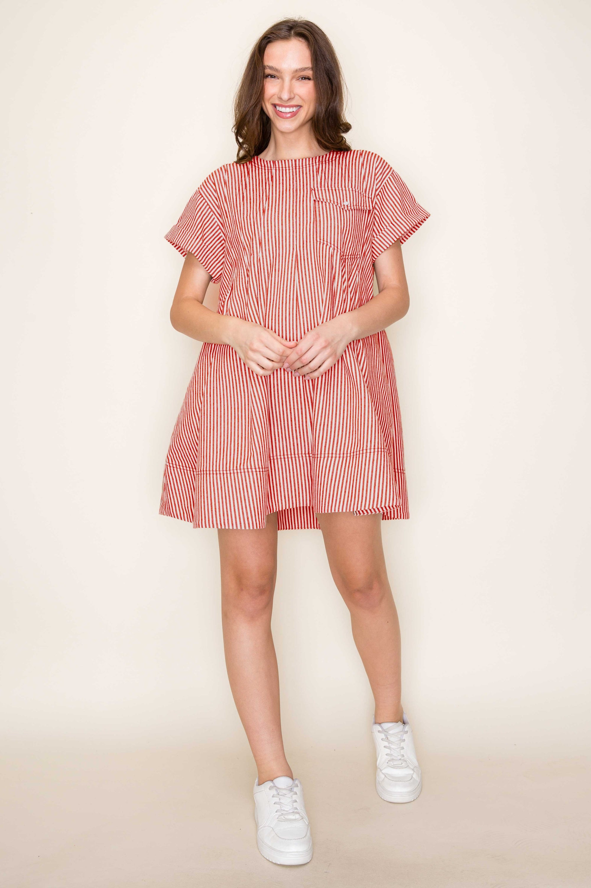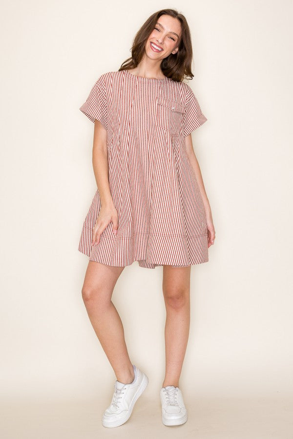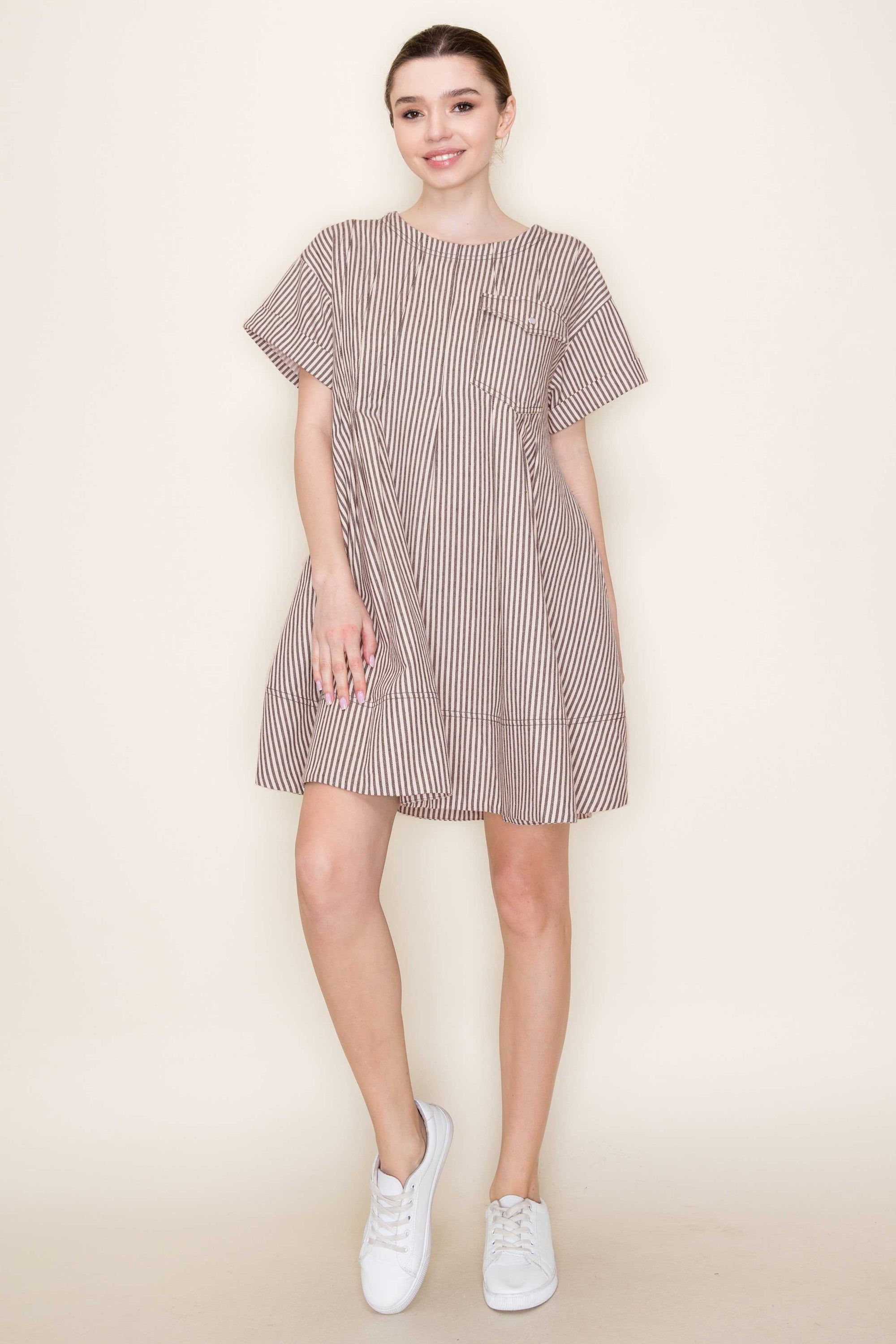 Discover effortless style with the Striped Swing Dress, available in rich mocha or vibrant red. Crafted from 100% cotton, this dress offers breathable comfort and natural softness. Its flattering swing silhouette moves gracefully, making it perfect for both casual outings and special occasions. Offered in small, medium, and large sizes to ensure a tailored fit that enhances your look with expert ease.