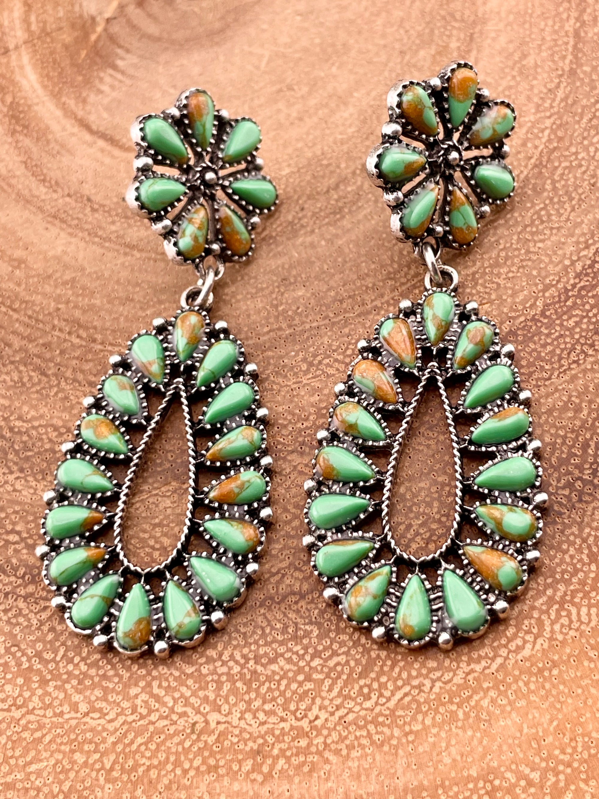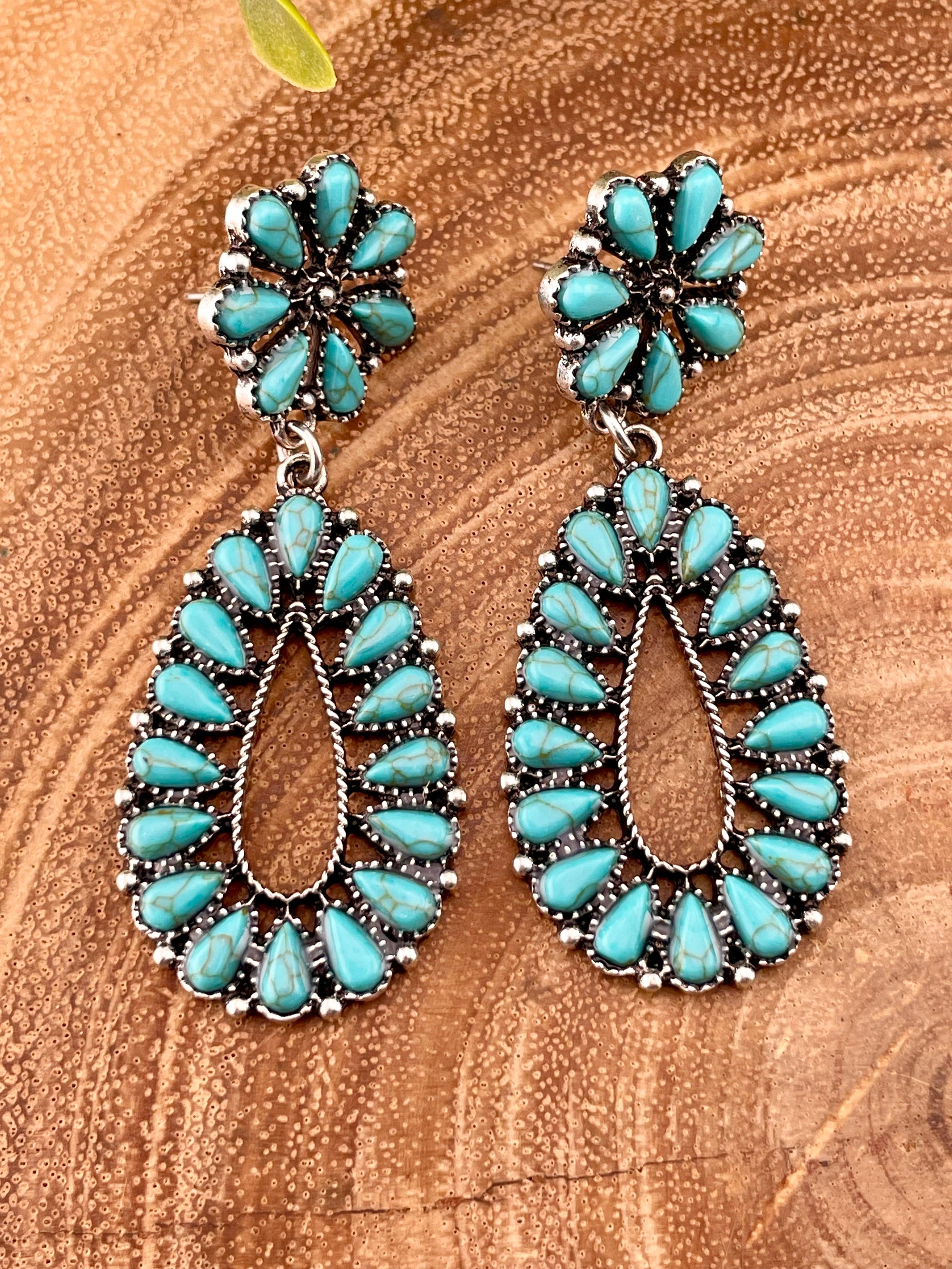 Miller Fashion Flower Post Teardrop Stone Earrings