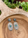 Miller Flower Post Oval Drop Double Concho Earrings - Turquoise