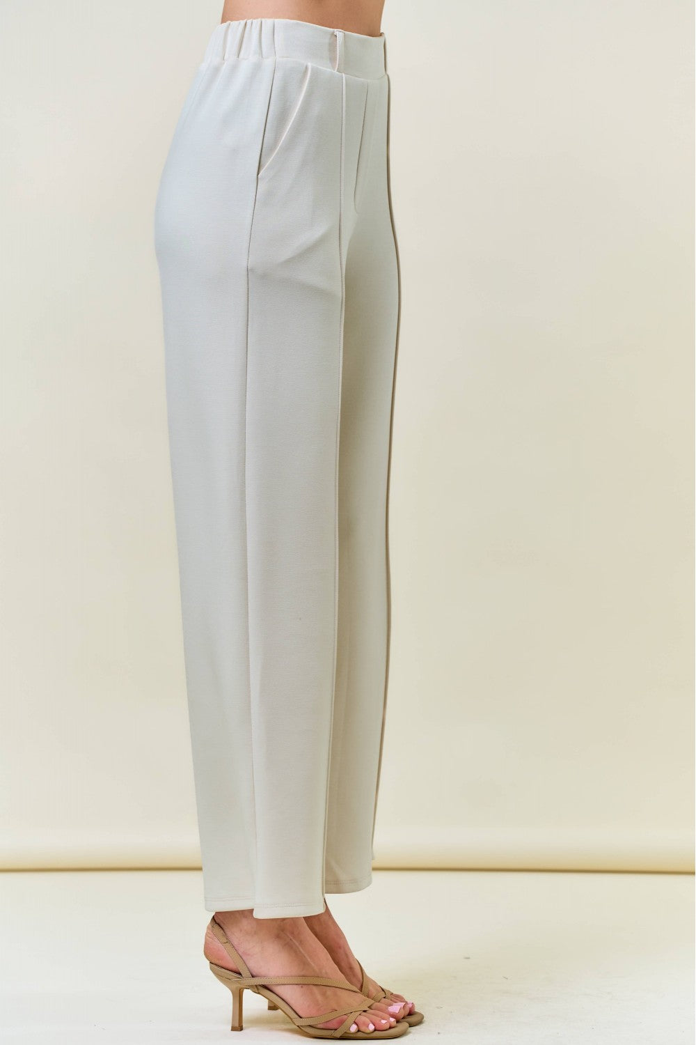 Experience unmatched comfort and style with these buttery soft brushed modal pintuck pants in elegant ecru. Crafted from a luxurious blend of rayon, polyester, and spandex, they offer a gentle stretch for all-day ease. The elastic waistband ensures a perfect fit, while the pintuck detail adds a touch of sophistication. Fully lined for smooth wear, these pants effortlessly combine relaxation with polished appeal. Ideal for dressing up or down, they bring both versatility and softness to your wardrobe.