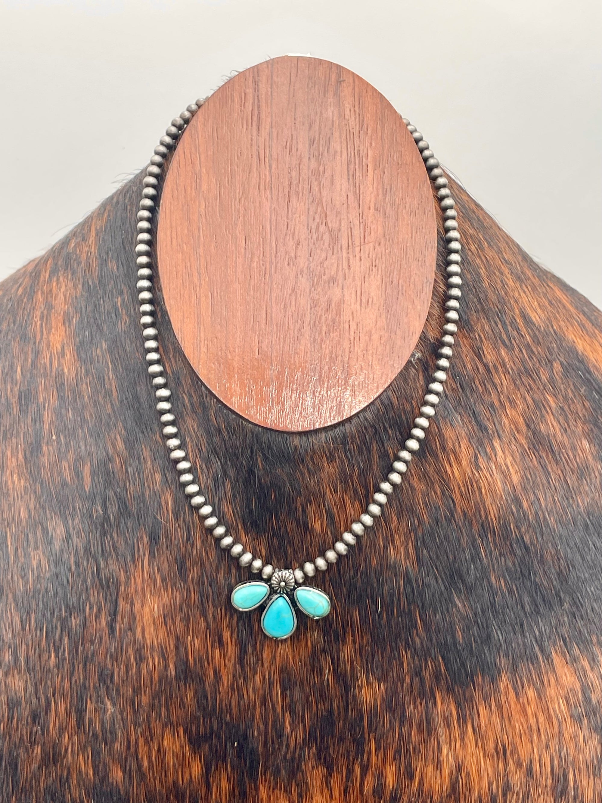 Kosky 4mm Silver Choker With Triple Teardrop Pendant - Turquoise