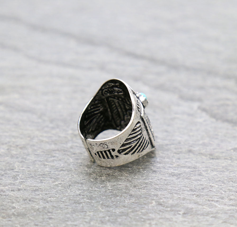 Lynette Stamped Thunderbird Cuff Fashion Ring - Turquoise