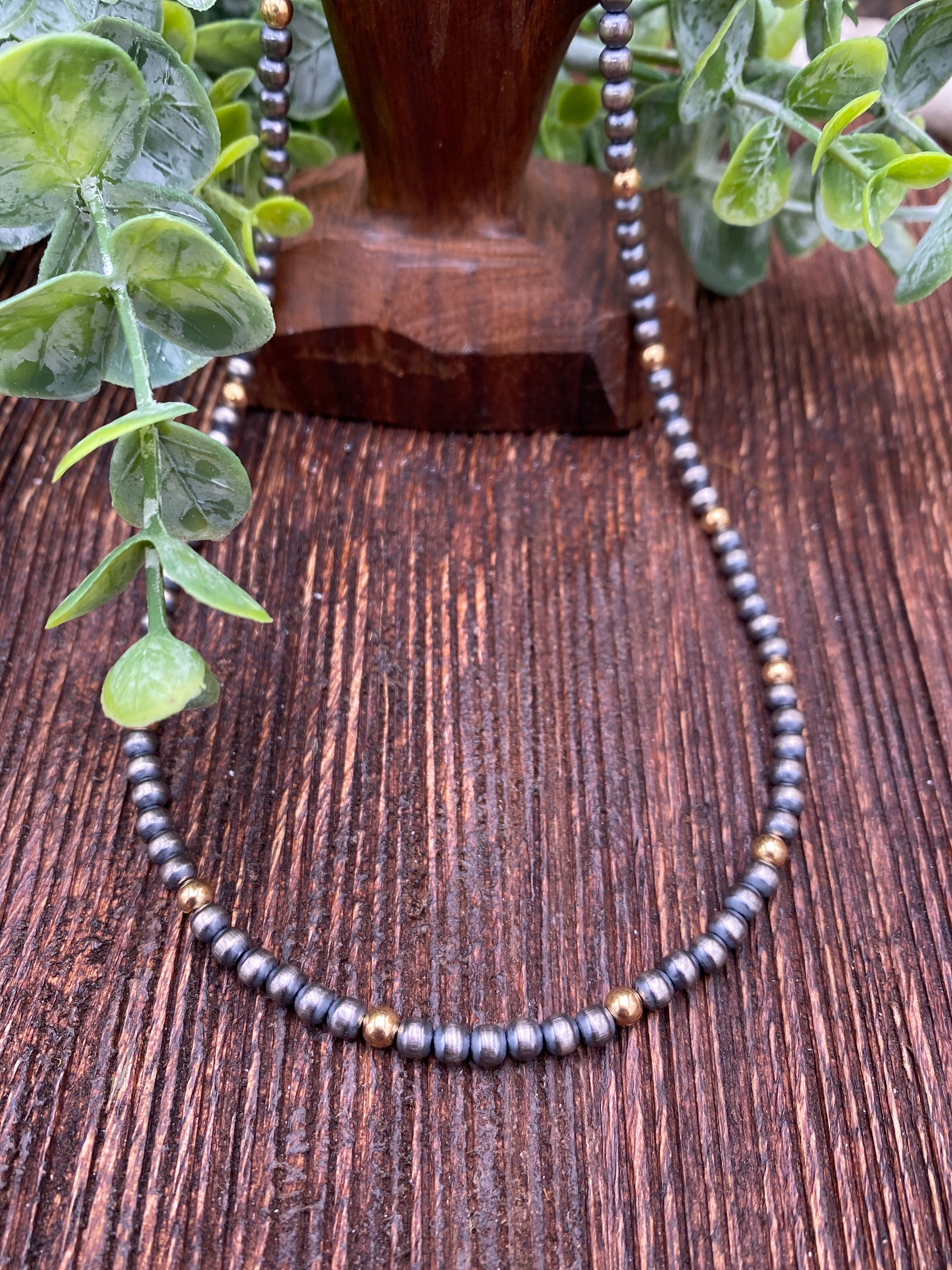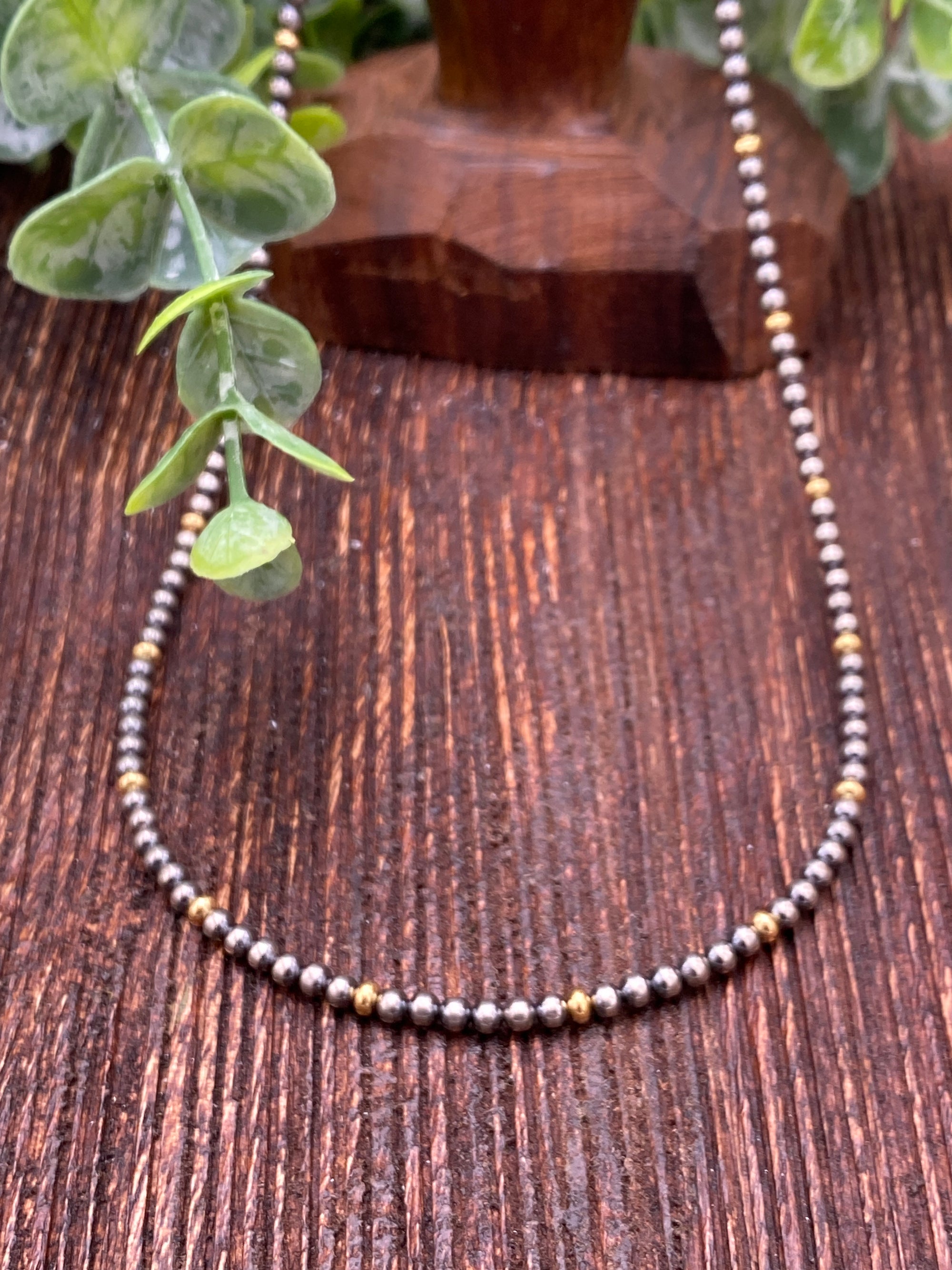 Cindy Sterling Silver & Gold Navajo Necklace - 18"