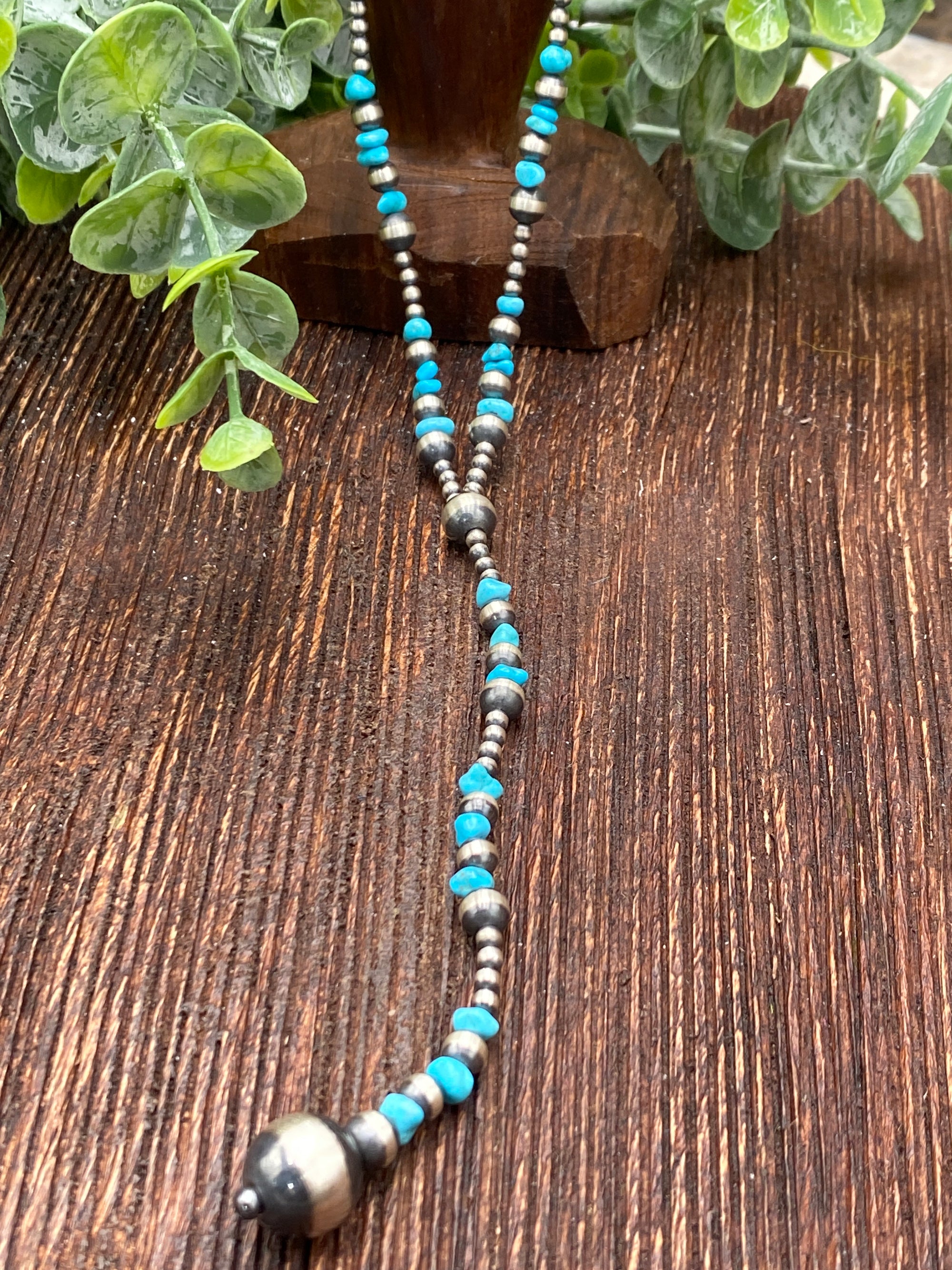 Hill Tumbled Turquoise & Varied Navajo Y Necklace - 20"