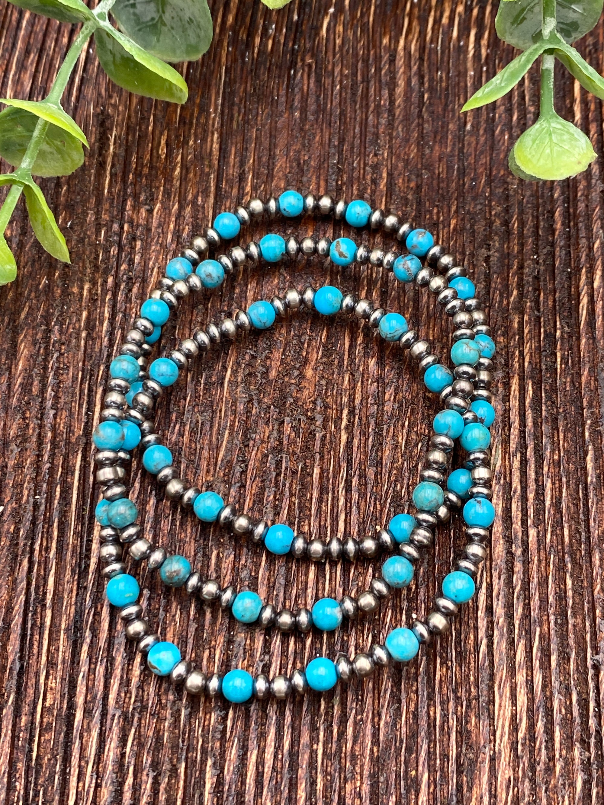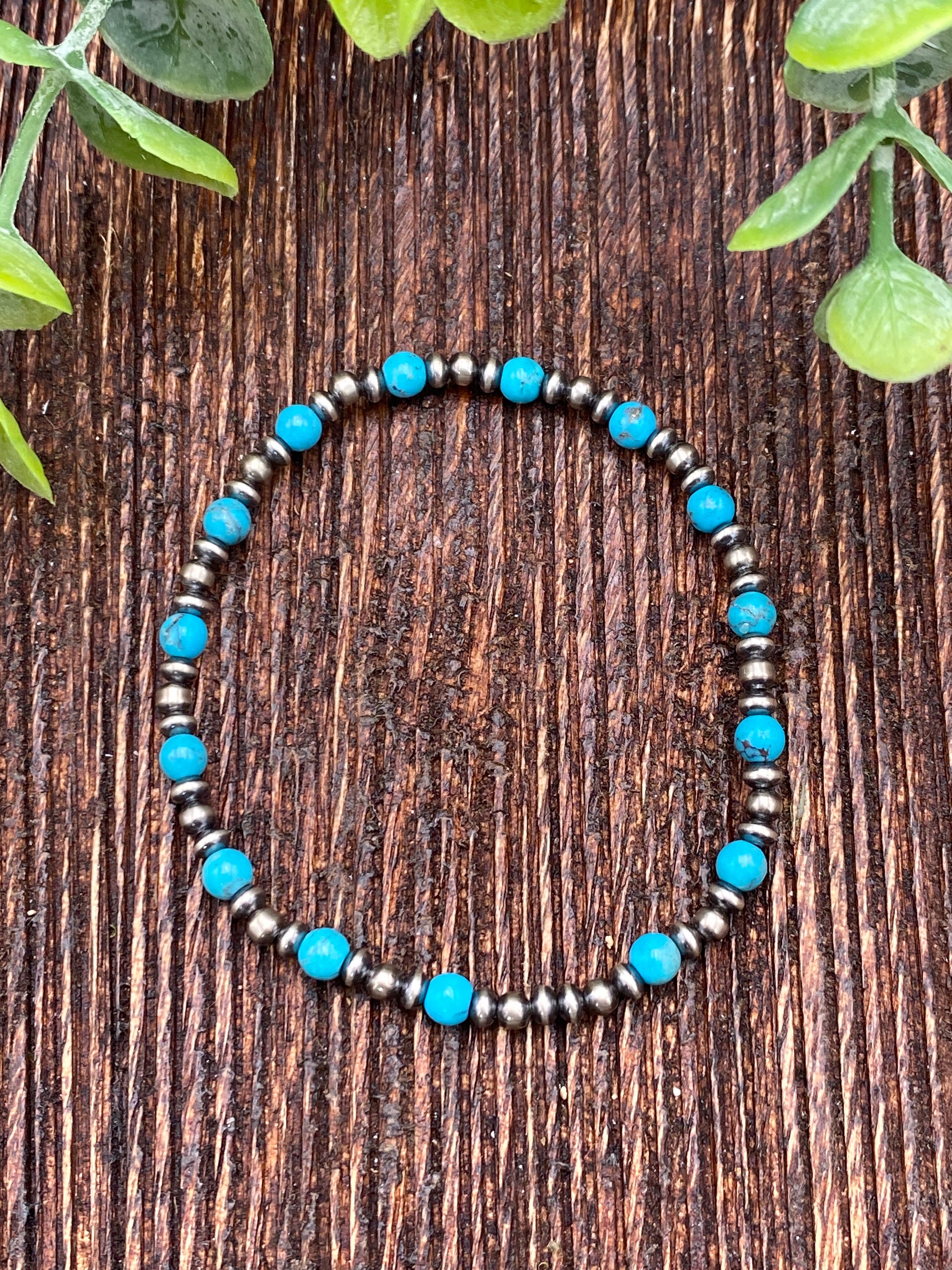 Jayco Sterling Round Turquoise & Navajo Bead Stretch Bracelet