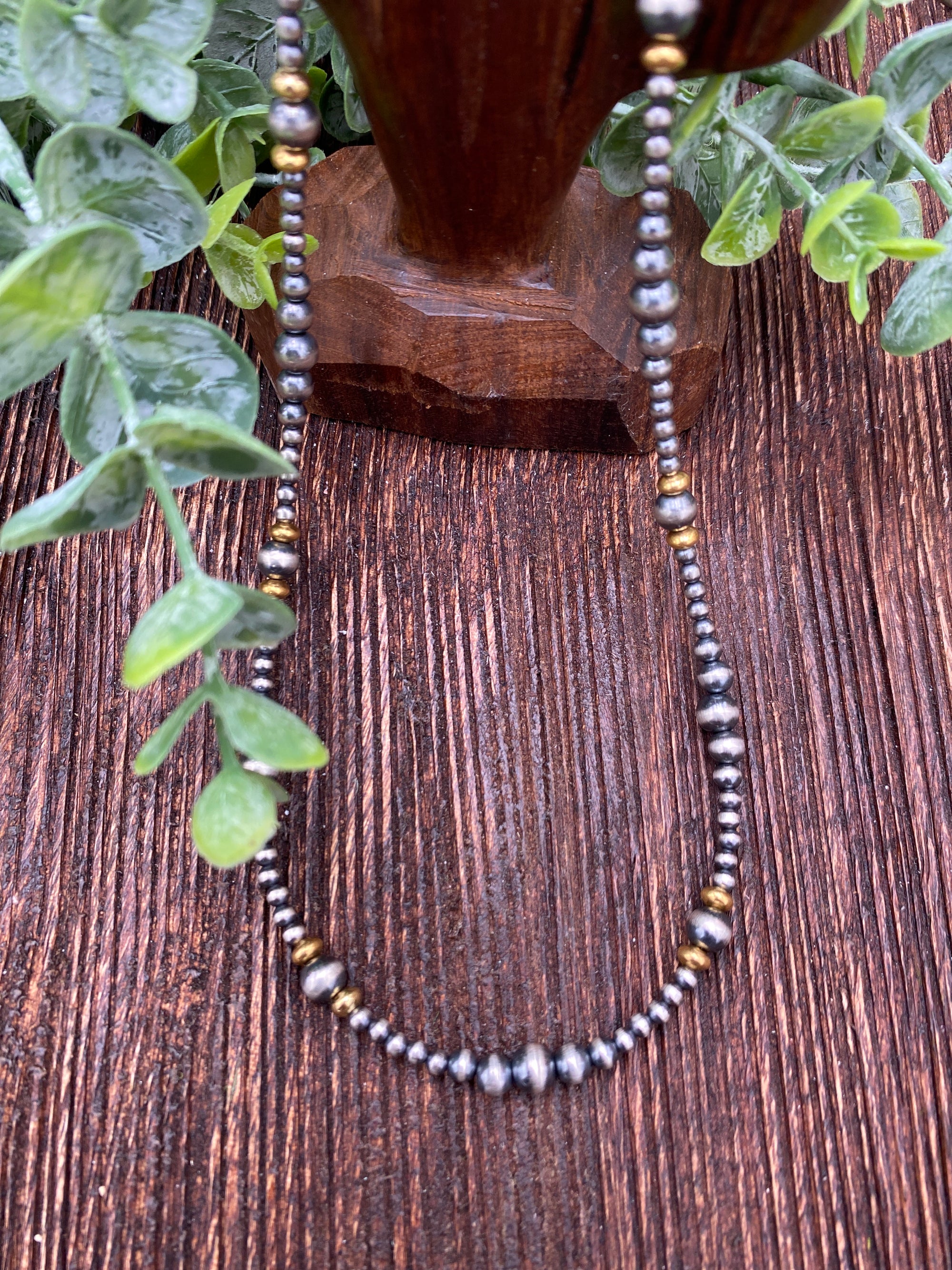 Kent Varied Sterling Silver & Gold Navajo Necklace - 18"