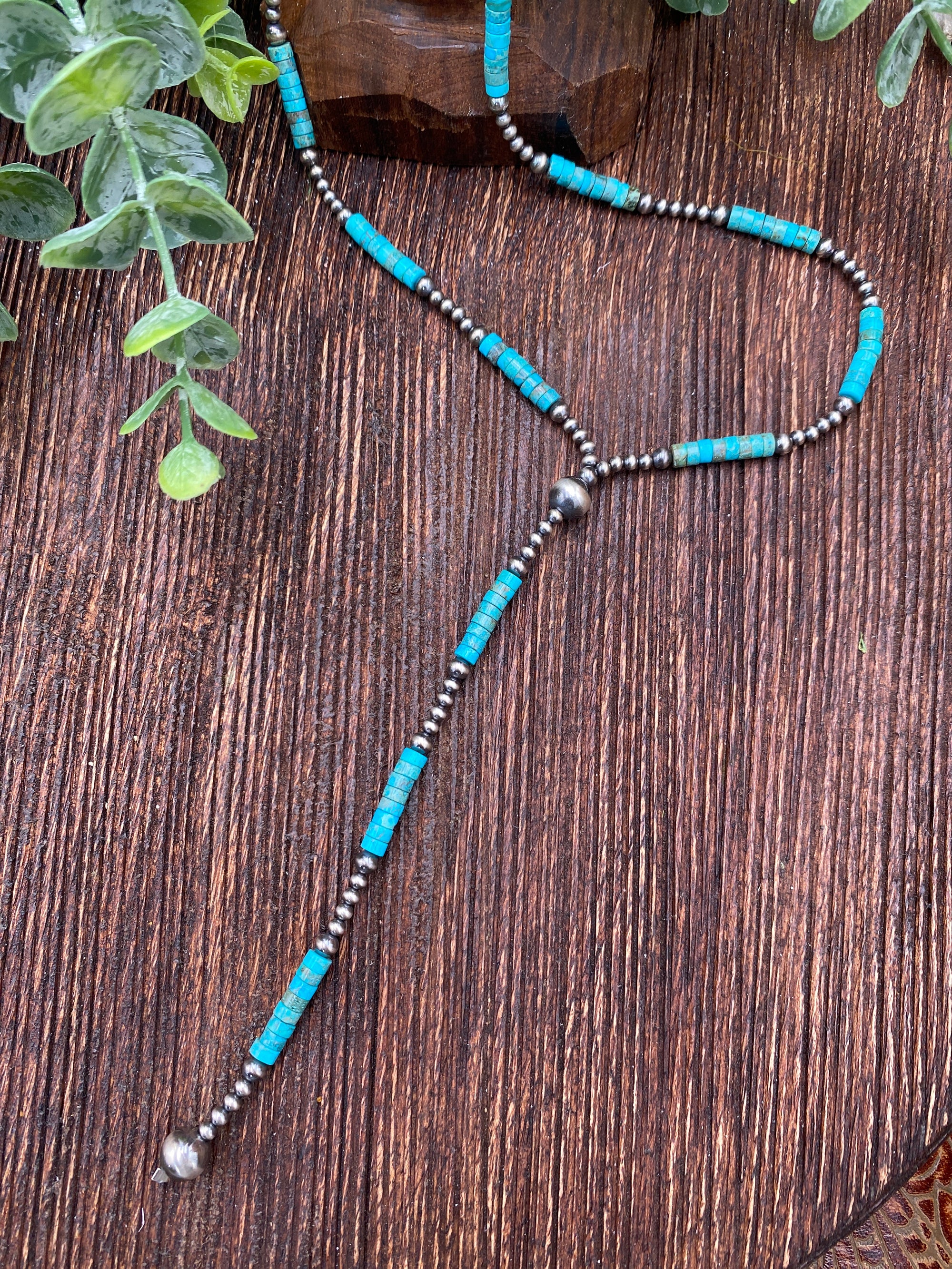 Klipson Navajo & Turquoise Cylinder Bead Y Necklace - 18"