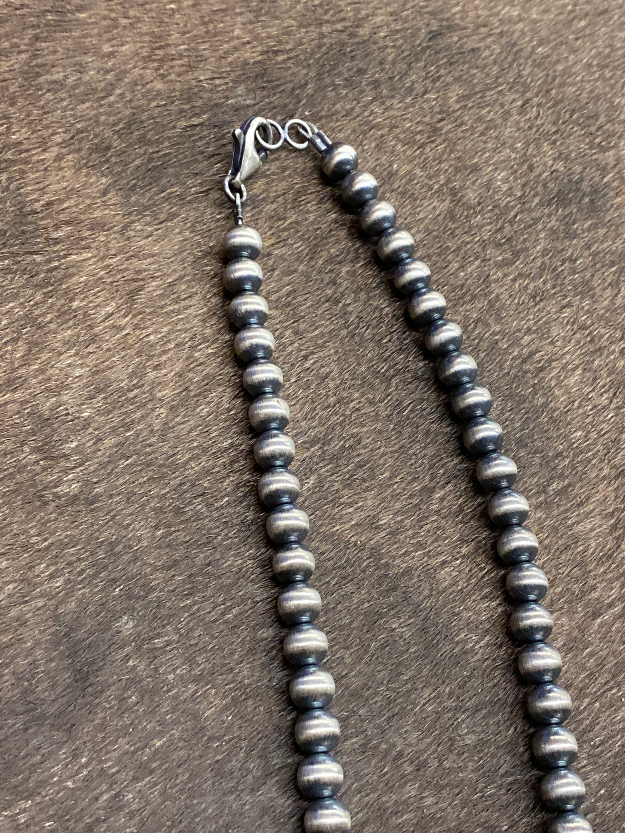 Nelson 6mm Navajo Necklace With Large Turquoise Flute Blossom Pendant - 24"