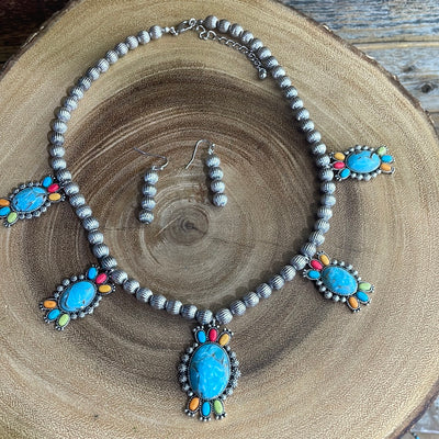 Ryder Stamped Bead Semi Stone Necklace & Earrings