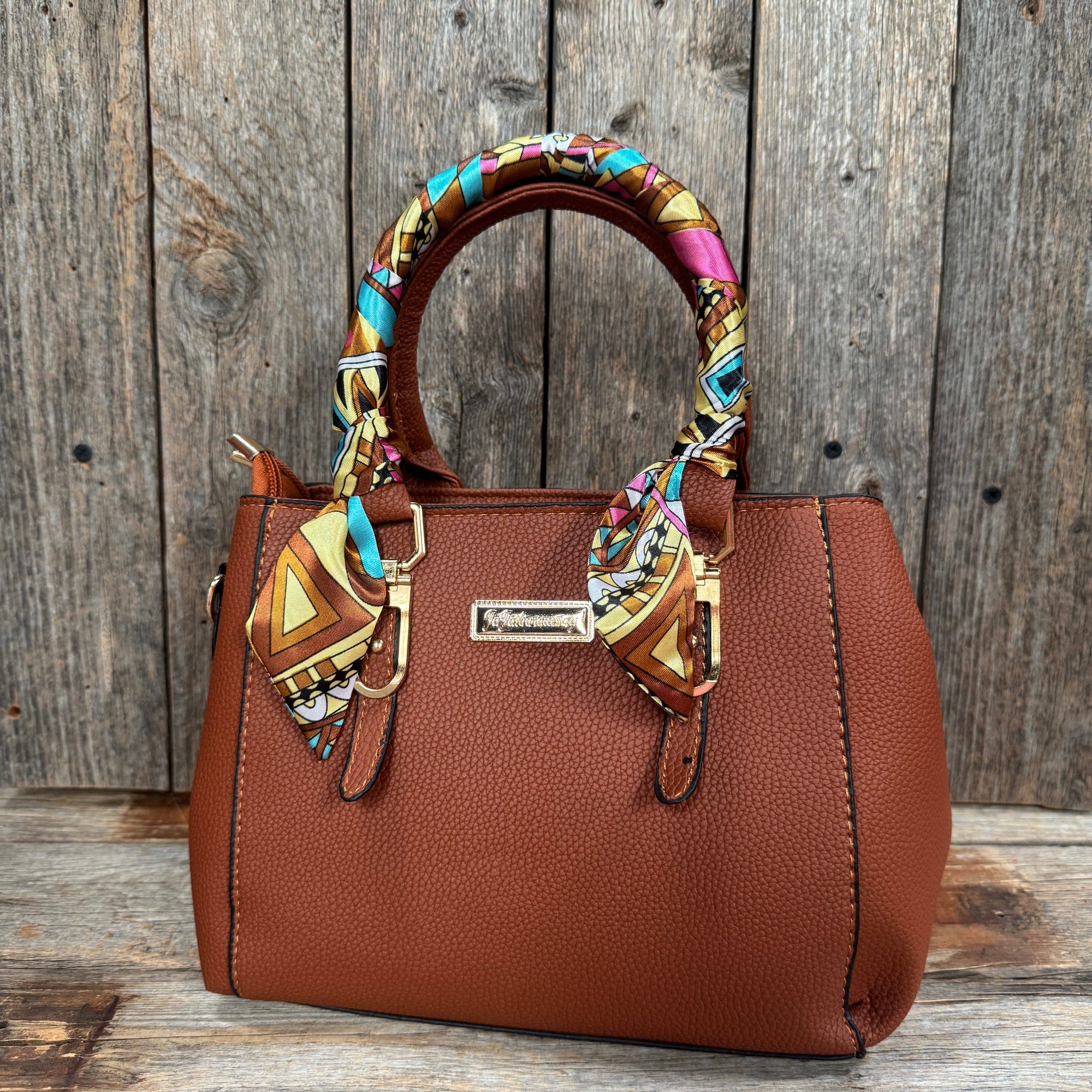 Western-Inspired Skinny Mini Scarf, brings a modern twist to the traditional wild rag. Why you'll love it: * Brown and yellow multi pattern * Lightweight, 100% silky soft polyester * Can be used for as a purse wrap, headband, neckerchief and more! * Express your western style, dress up any outfit * Measuring 39" x 1.5" Purse and other accessories not included.