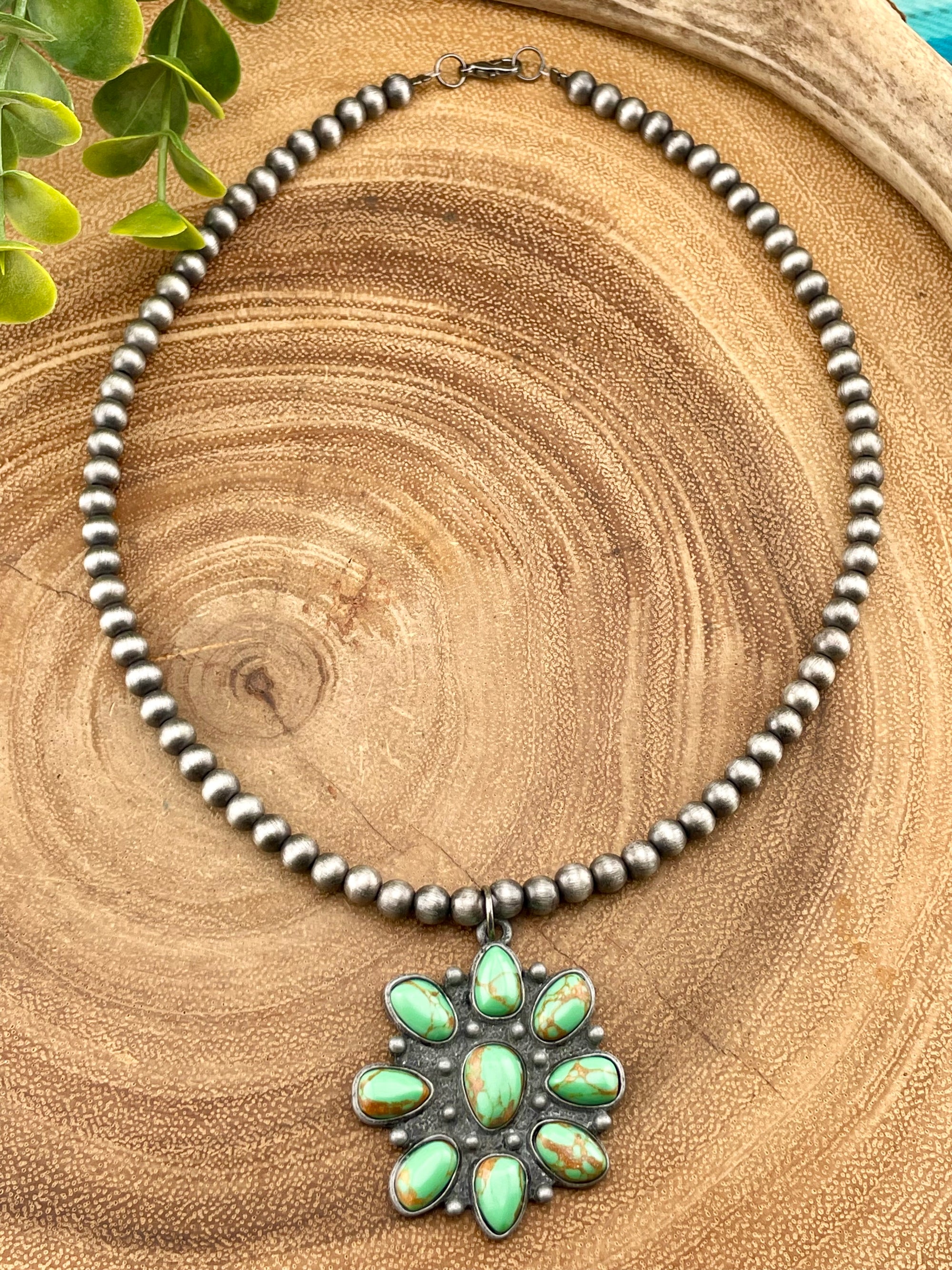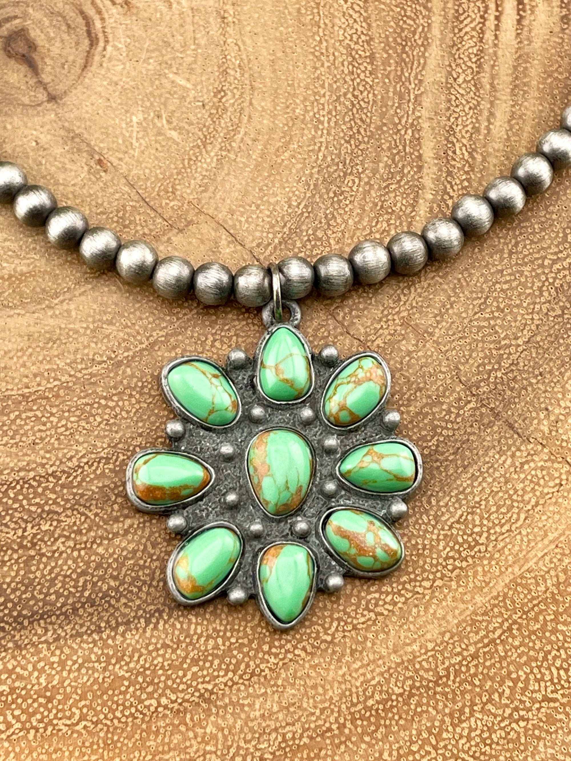 Lola 5mm Silver Bead Fashion Necklace With Round Stone Cluster - 17"