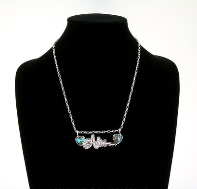 • Fashion link chain necklace with word pendant & faux turquoise hearts
