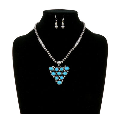 Arthur Fashion Navajo Stamped Cylinder Necklace With Triangle Cluster Pendant - Turquoise