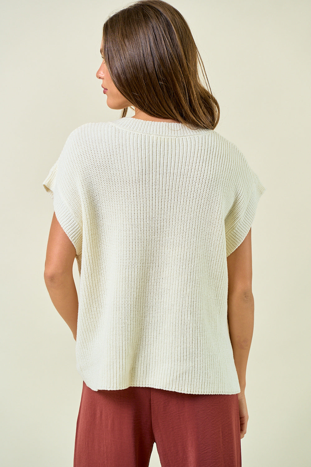 The Horse Shoe Ribbed Sweater combines comfort and style effortlessly. Made from a cozy 50% acrylic and 50% cotton blend, it features a bold, textured horseshoe applique that makes a statement. Its relaxed fit with drop shoulders and a sleeveless design offers versatile layering possibilities, perfect for elevating any casual outfit with a unique, laid-back edge.