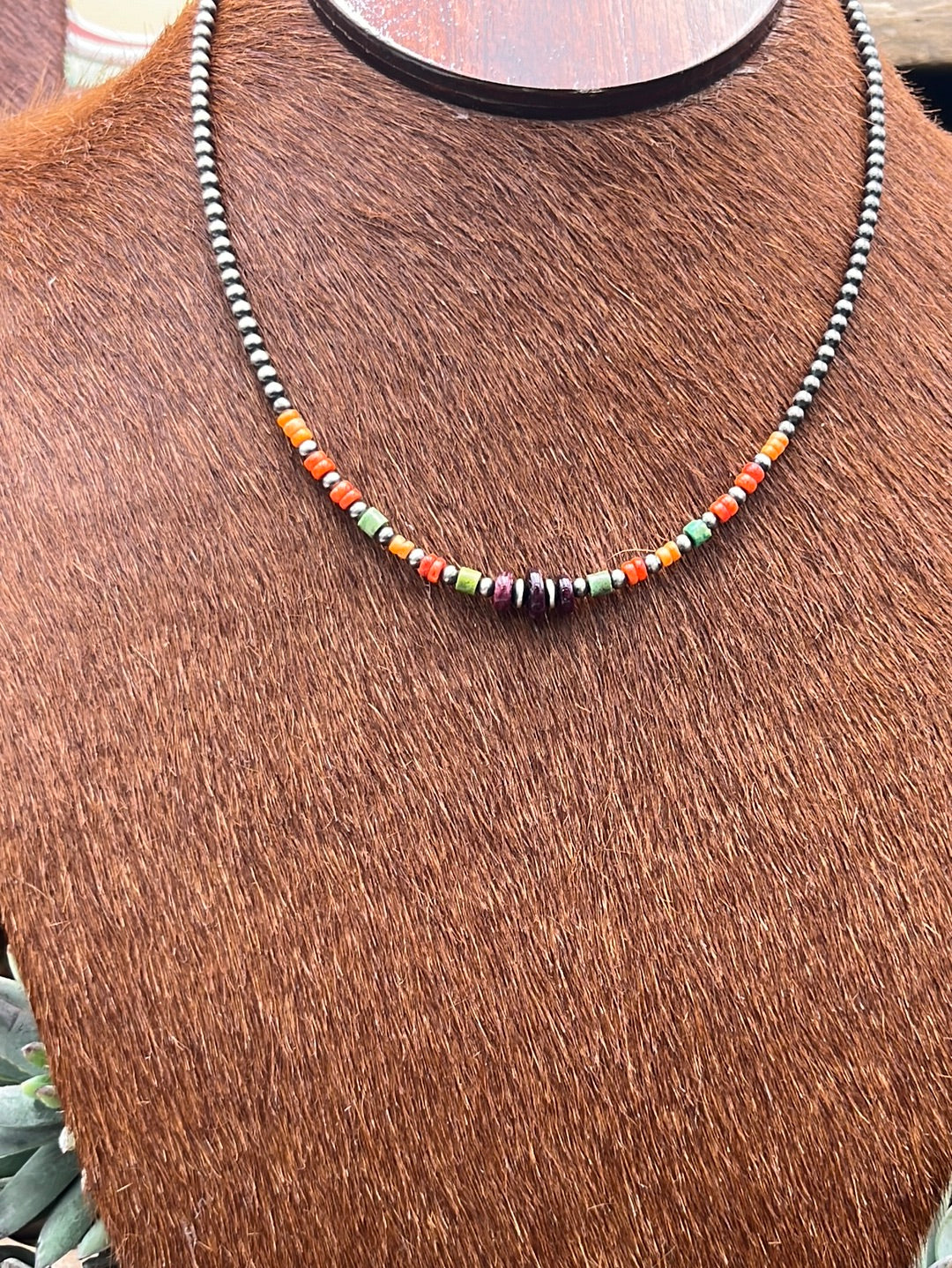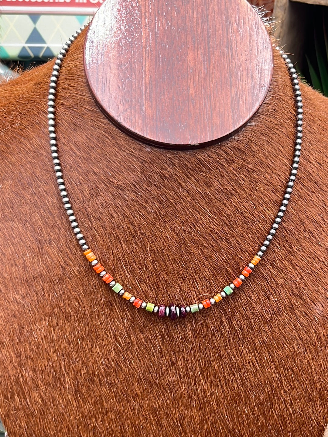 Helen 3mm Navajo Necklace With Spiny Beads - 16"