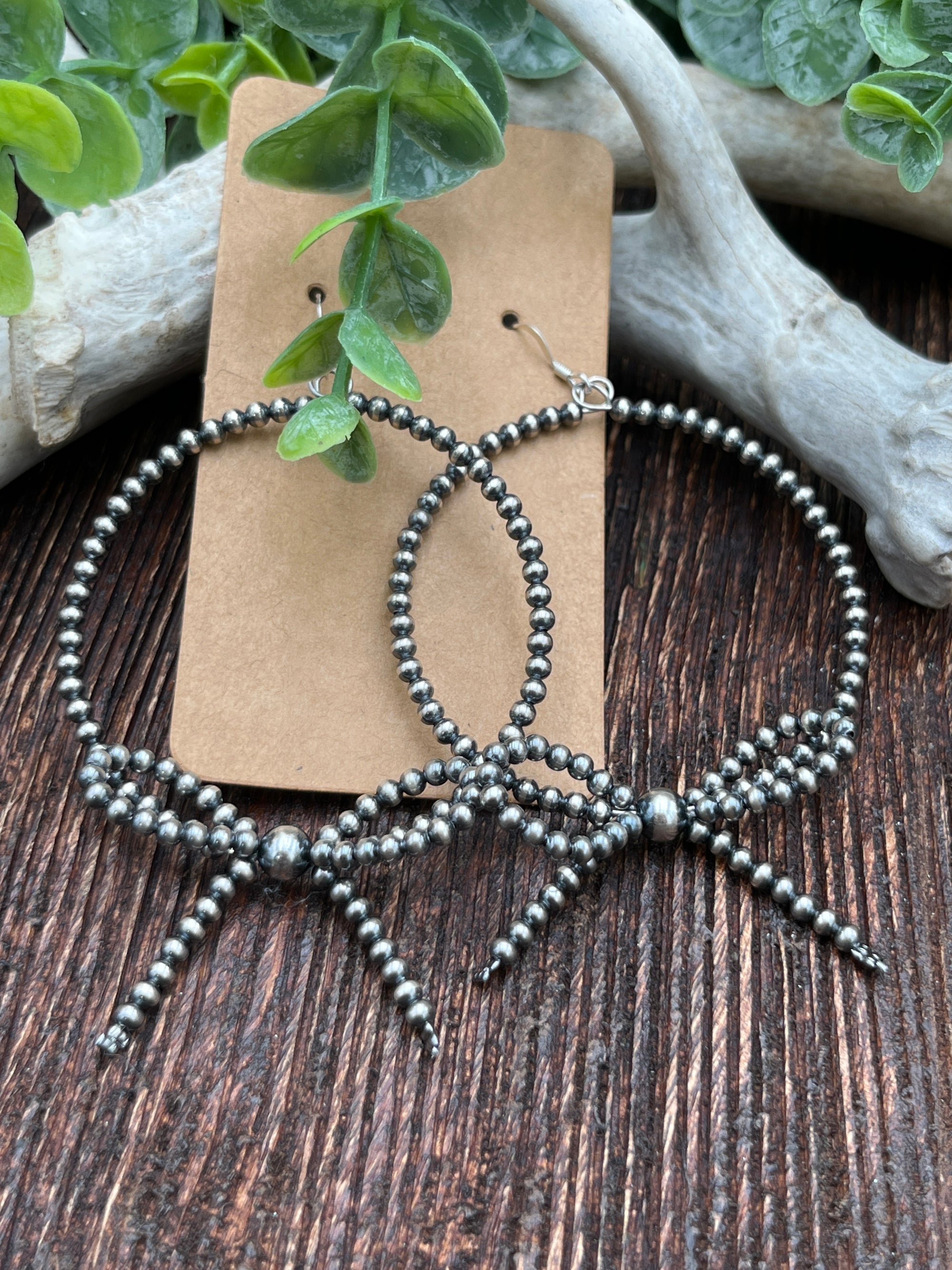 Evaine Sterling Varied Bead Silver Bow Earrings