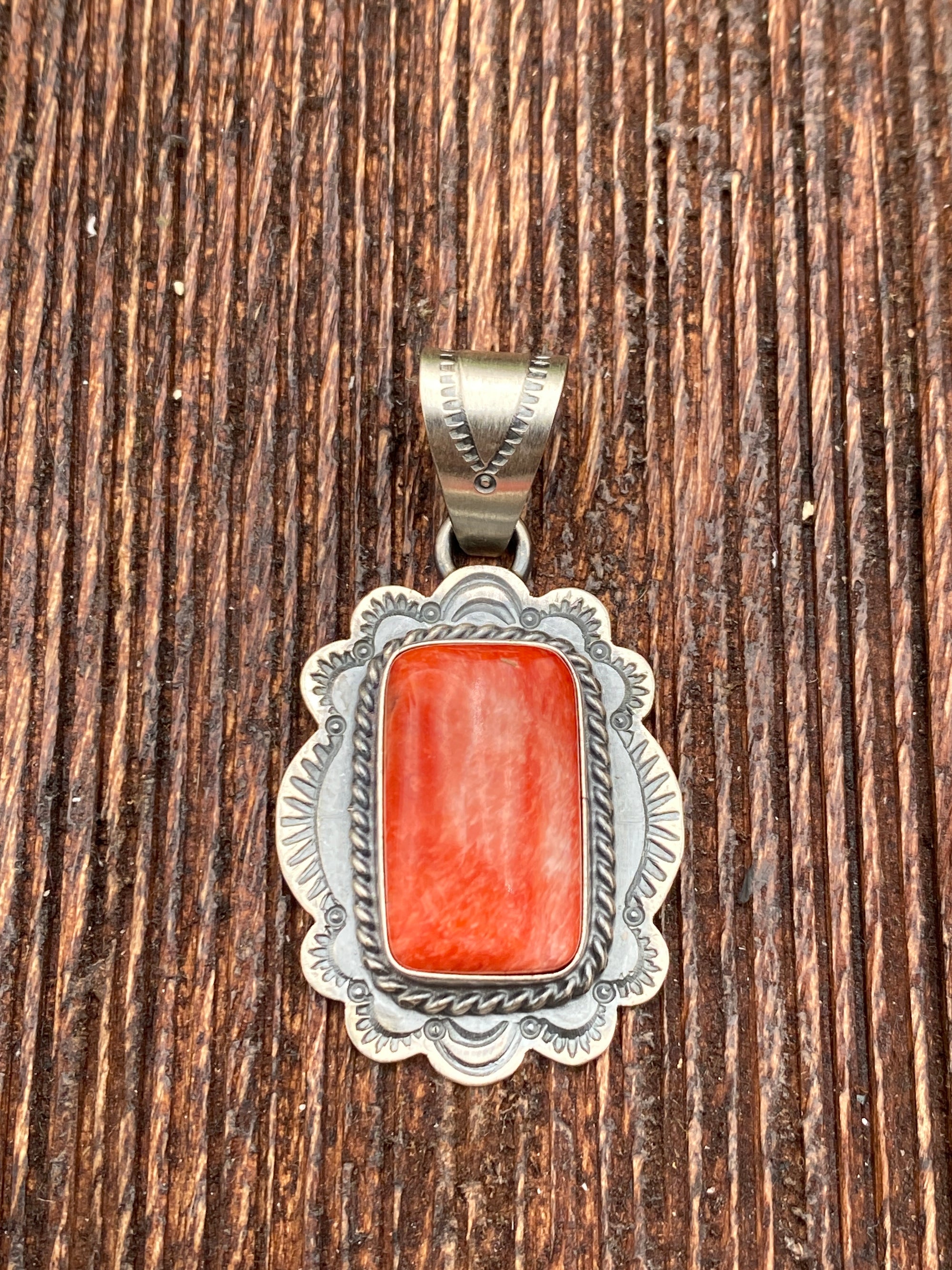 Clarkson Sterling Scallop Framed Spiny Pendant - Red