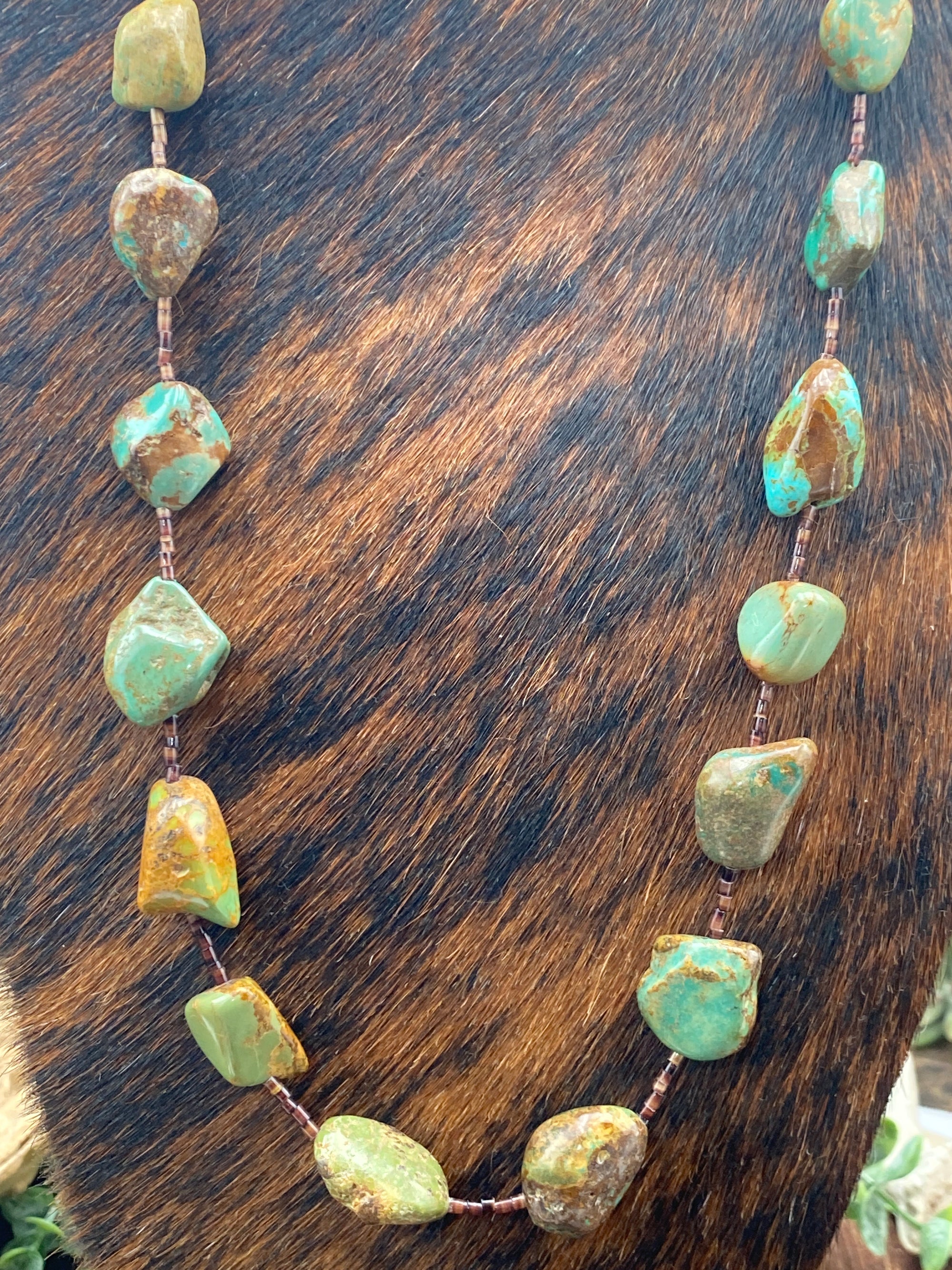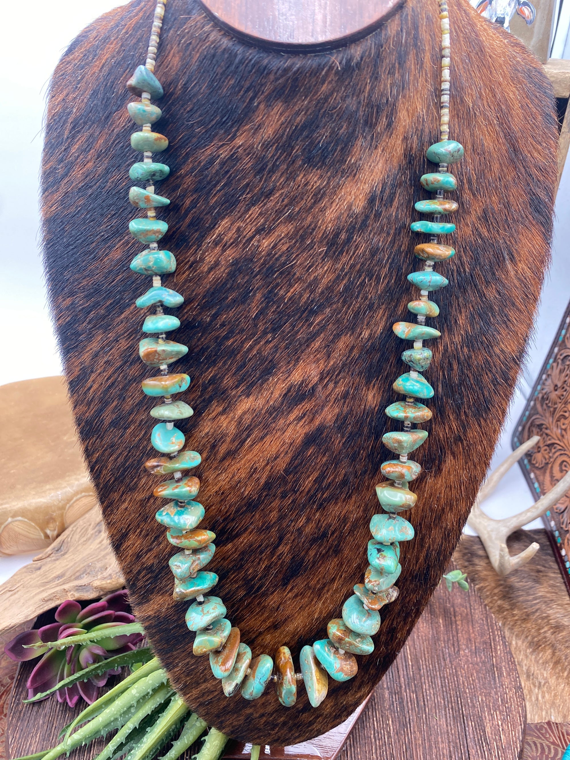 Venice Tumbled Turquoise & Brown Heishi Necklace - 32"