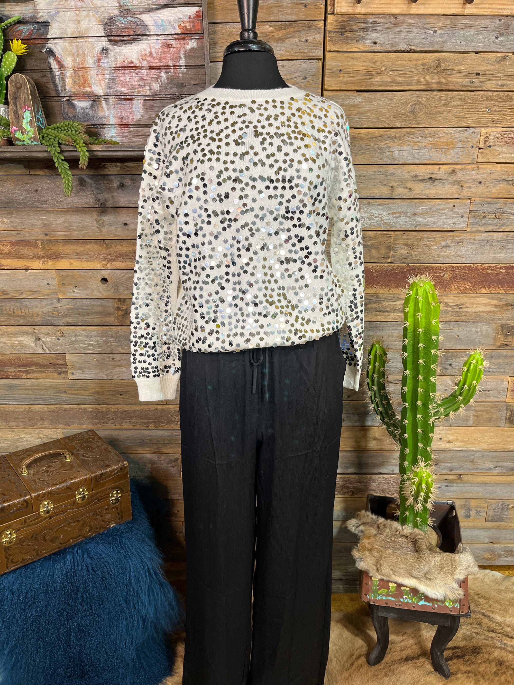 Experience the perfect blend of comfort and style with our Maisy Sequin Crew Neck Sweater. The soft fabric and long sleeve design will keep you cozy, while the added sparkle lends a touch of glamour to any outfit. Elevate your wardrobe with this must-have piece.