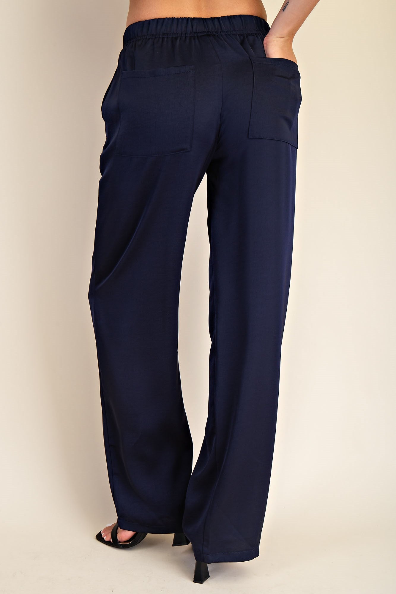 The Desiree Top and Wide Leg Pants feature a sophisticated blend of navy and mocha hues, crafted from 100% polyester for a refined finish. Each piece is sold separately, offering the flexibility to wear them together for a harmonious ensemble or pair them individually for versatile, elegant styling options.