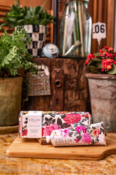 Discover Lollia’s Always in Rose Eau de Parfum.  Endlessly enchanting, fragrant blossoms beckon. Blushing Rose unfurls with a breath of captivating beauty, cascading in a tangle of tranquil Hibiscus washed in warm Amber rays.