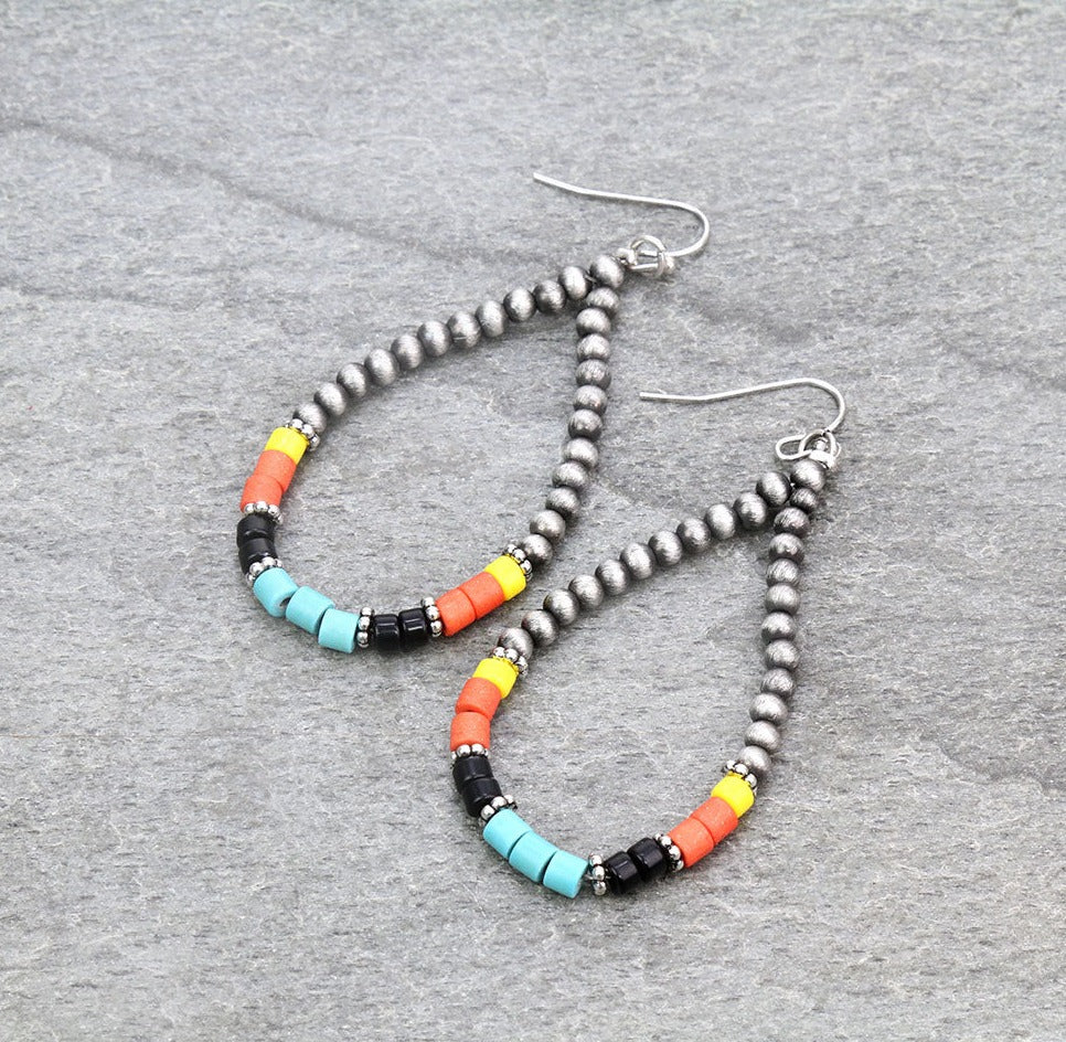 • Fashion silver Navajo pearls, stamped beads & multicolor beads