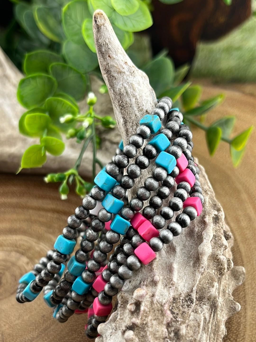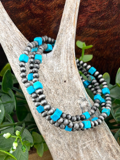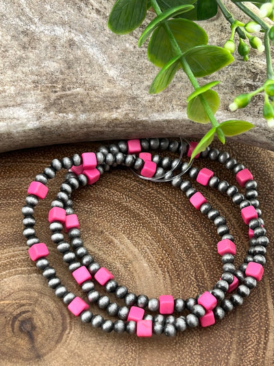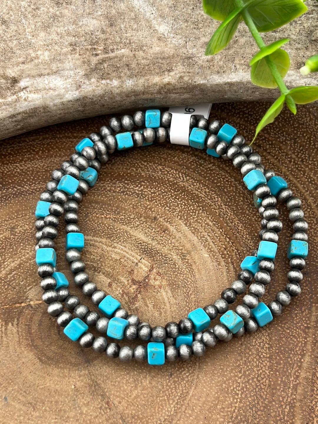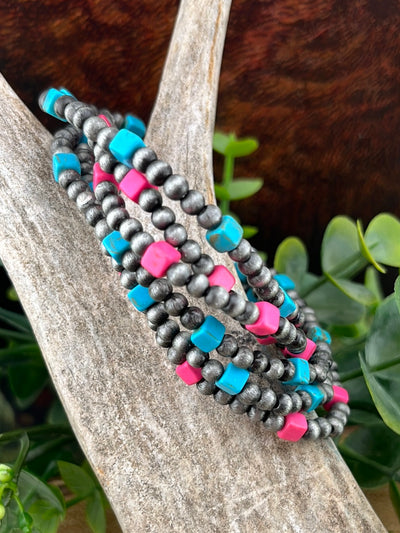Bailey 3mmNavajo & Square Stone Fashion Stretch Bracelet Set