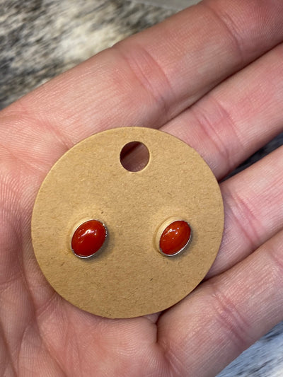 Bishop Italian Coral Oval Stud Earrings - 8mm
