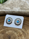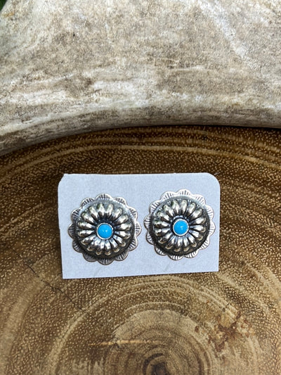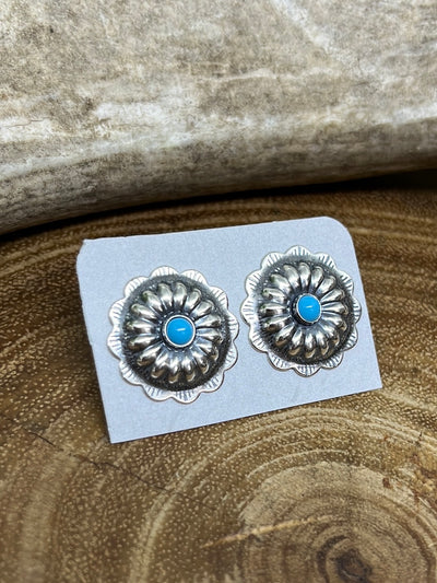 Bundt Sterling .75" Scalloped Round Concho Post Earrings - Turquoise
