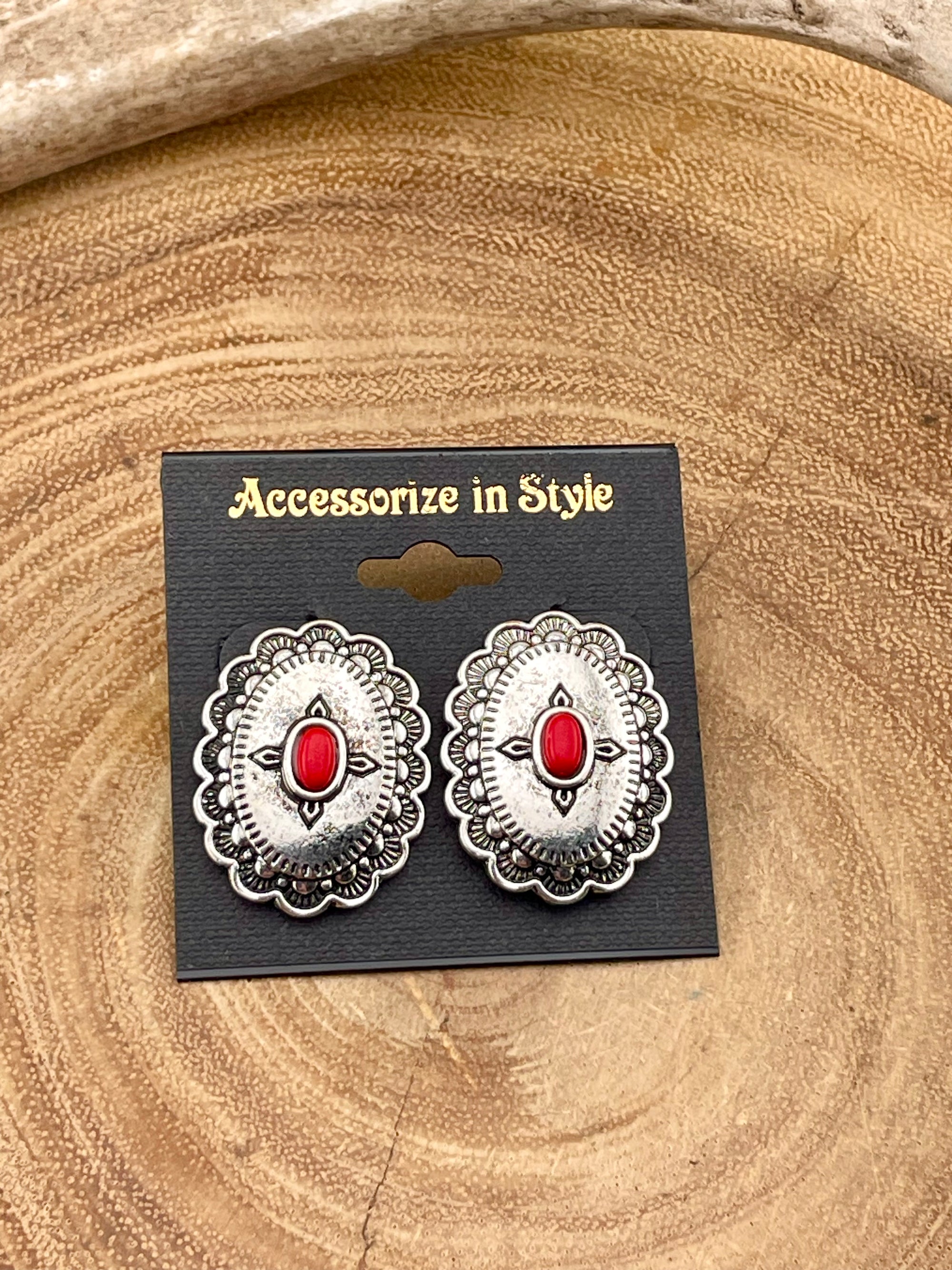 Carroll Scalloped Fashion Concho Earring Center Oval Stone