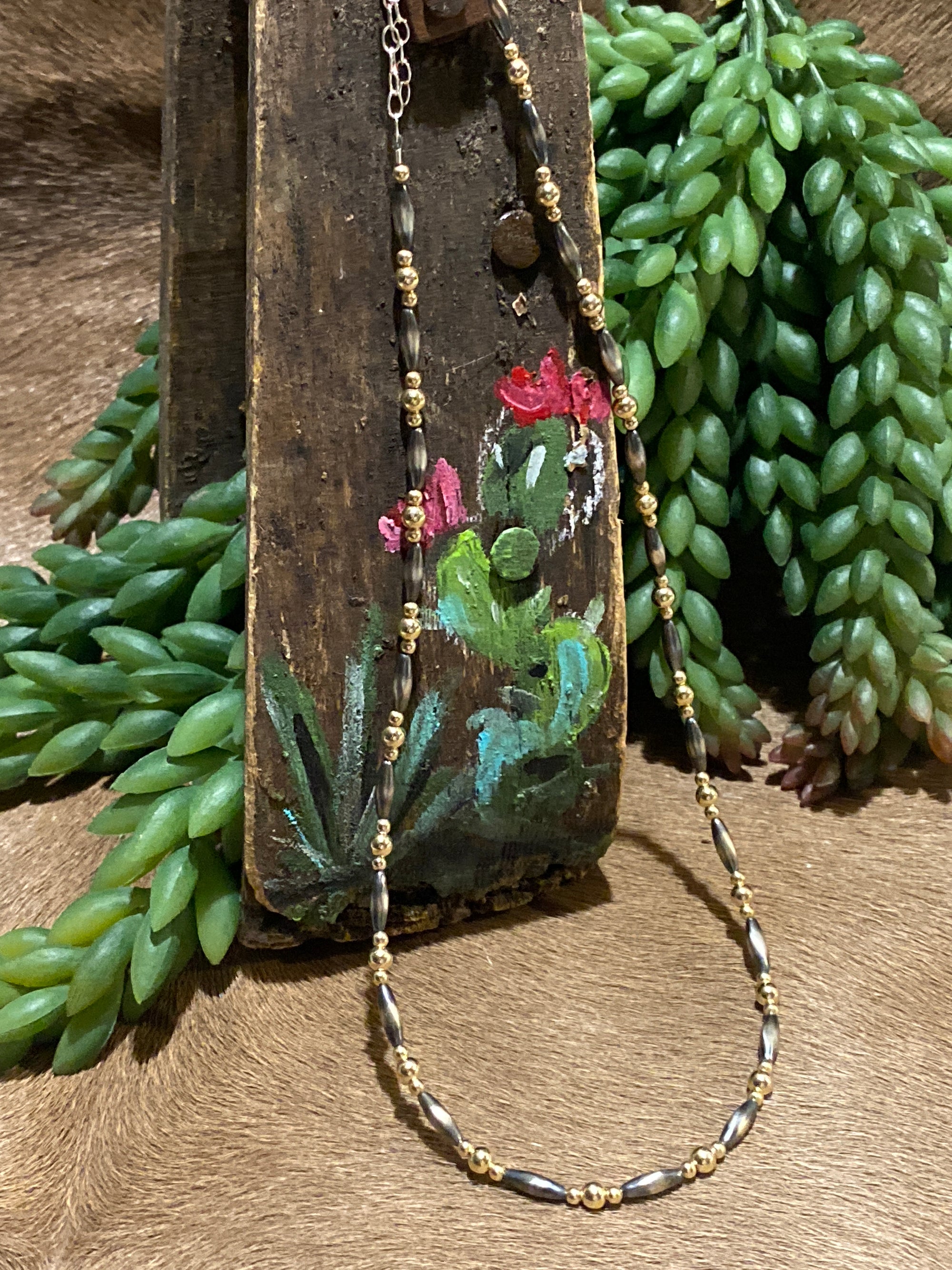 Carter Torpedo & Gold Bead Sterling Necklace - 18"