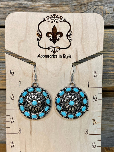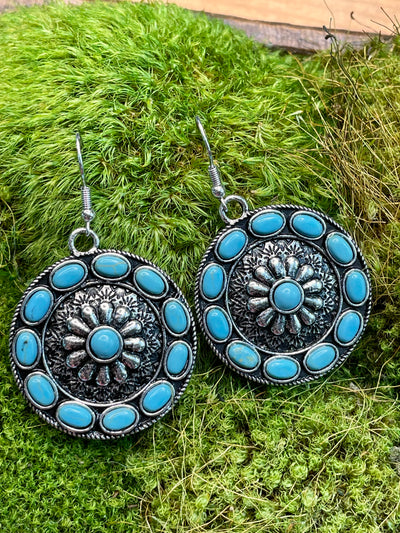 Chester Round Concho Fish Hook Earrings - Turquoise