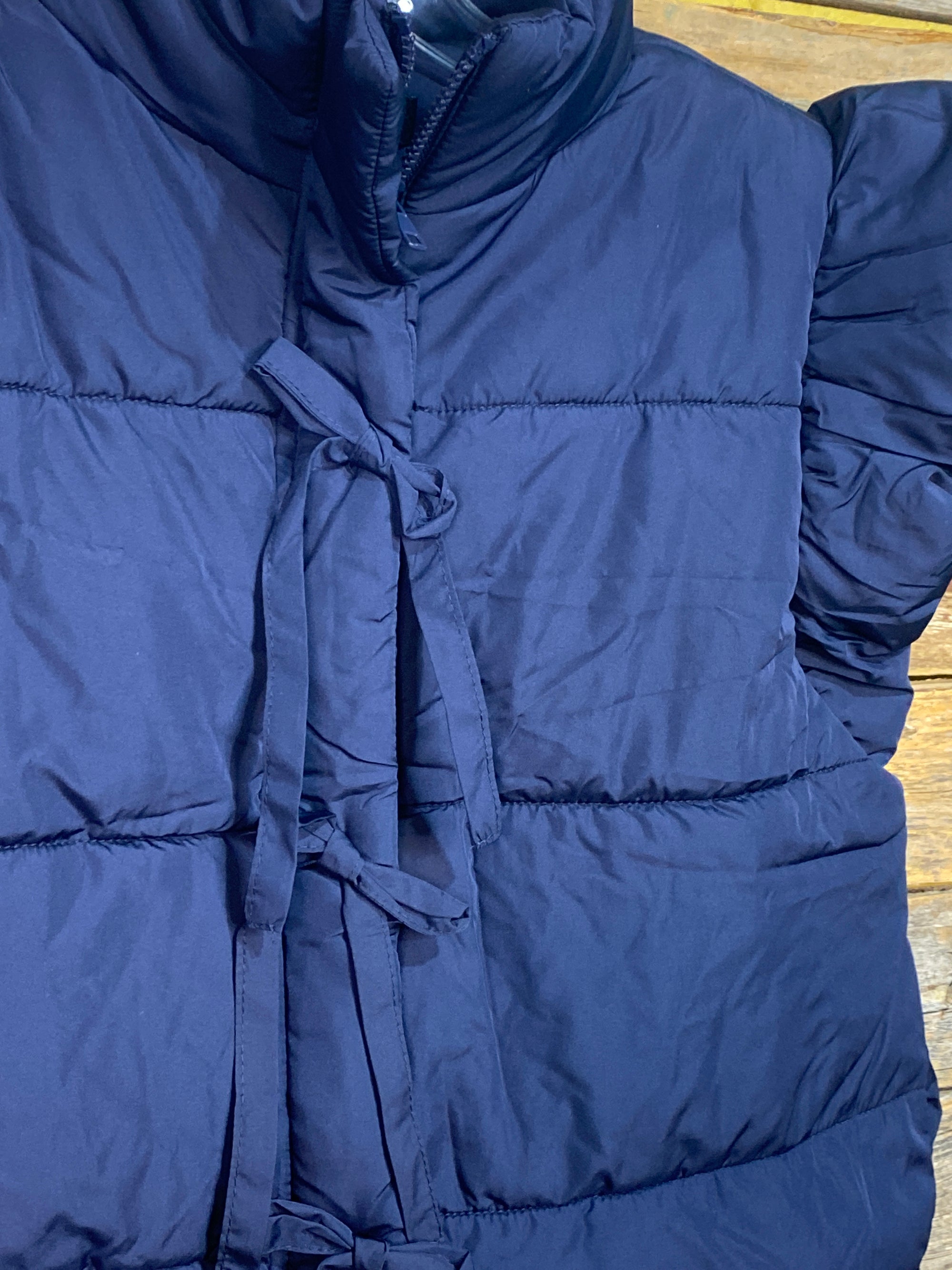 Stay warm and stylish with this Flutter Sleeve Puffer Vest, featuring a flattering zip-up design and charming bow details on flutter sleeves. Available in versatile navy and brown, it offers lightweight insulation perfect for layering on cooler days while adding a touch of feminine flair to your outfit.