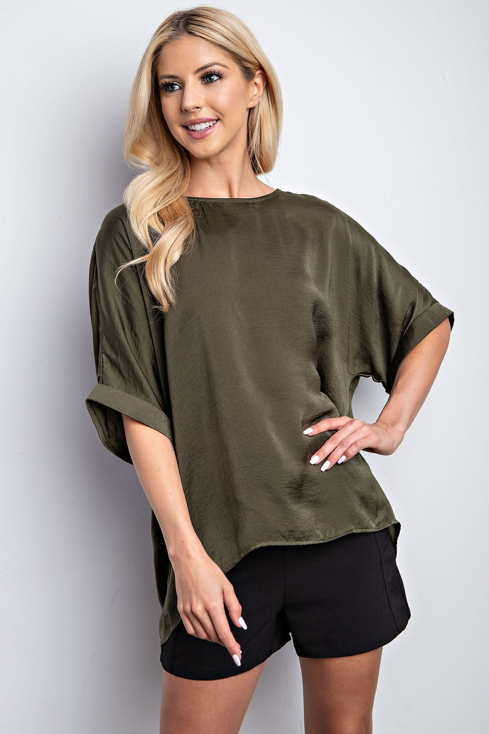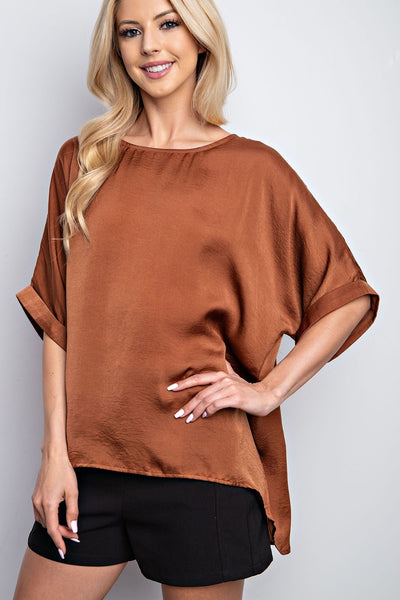 This essential blouse takes your wardrobe to new heights! Made with 100% polyester, it features cuffed Dolman sleeves, providing comfort and style perfect for any occasion. Available in 4 colors - black, burgundy, olive, and rust - this top will never go out of style. Refresh your look today!
