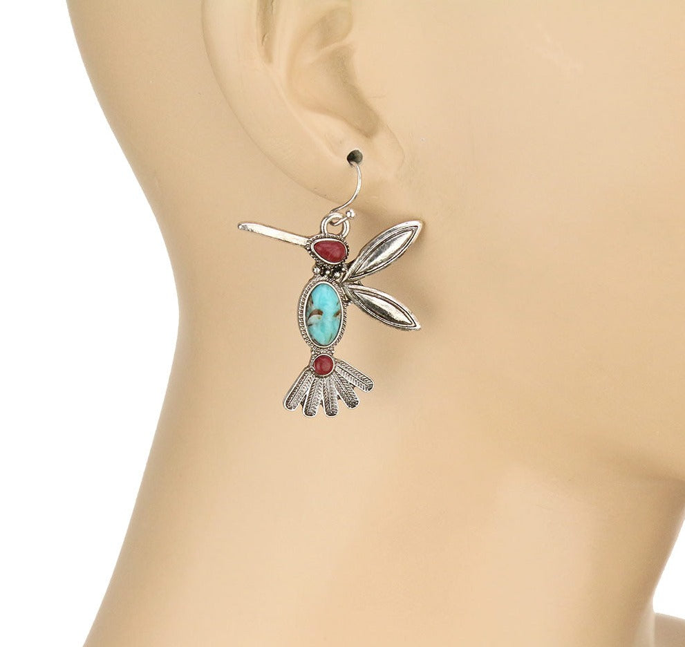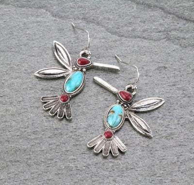Debbie Fashion Turquoise & Spiny Hummingbird Earrings
