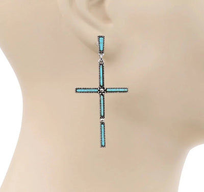 Decatur Fashion Turquoise Cross Post Earrings - 2.5"