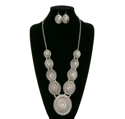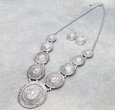 Devine Fashion Concho Jewelry Necklace, Earrings, Ring & Stretch Bracelet