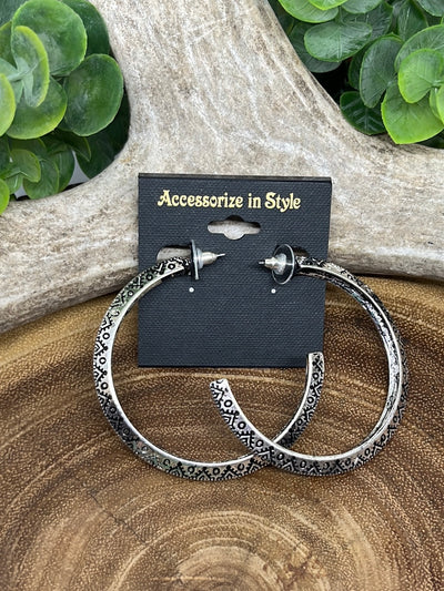 • Fashion silver stamped hoop earrings