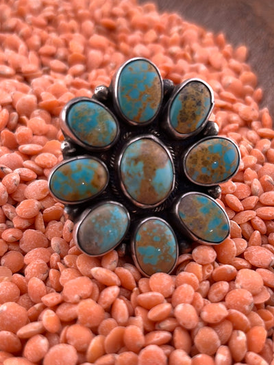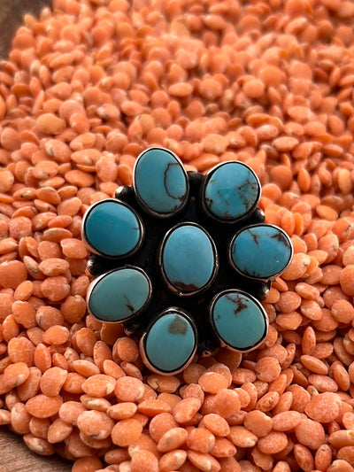 Grand Teton Sterling Flower Cluster Turquoise Ring