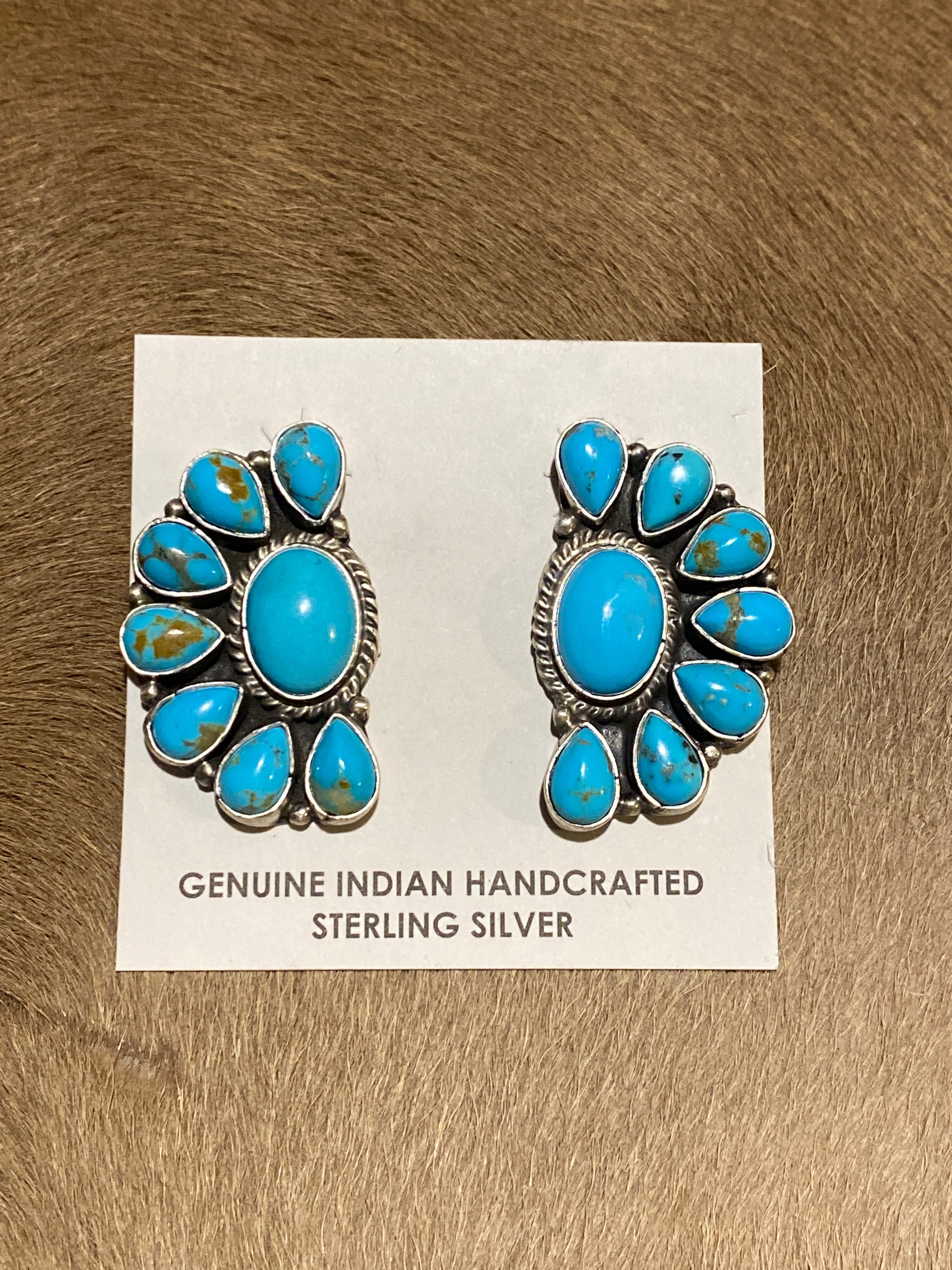 Greenbriar Turquoise Oval Center Half Circle Cluster Post Earrings - 1.5"