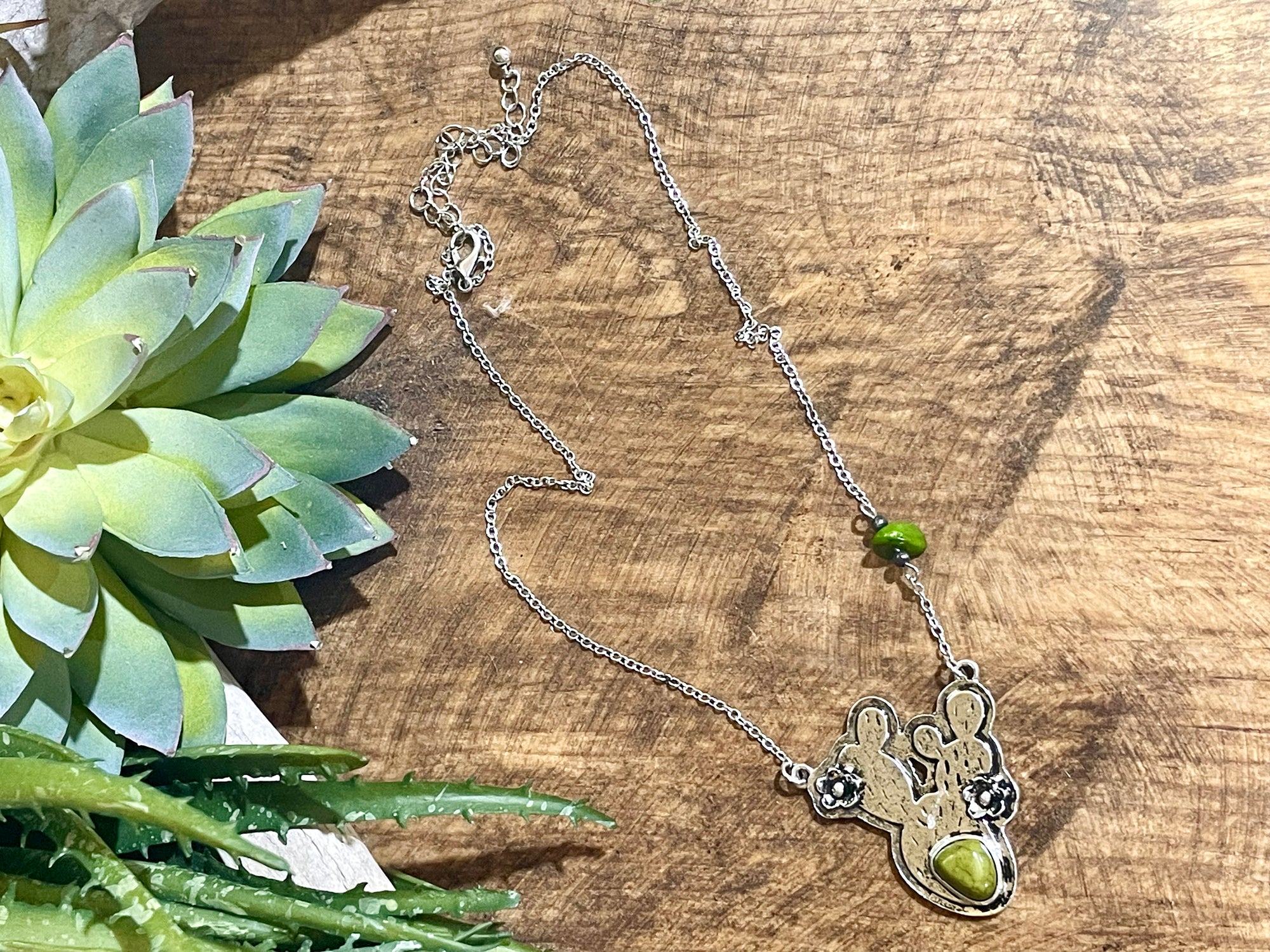 High Plains Green Stone Base Cactus Necklace & Earrings - 1.5"