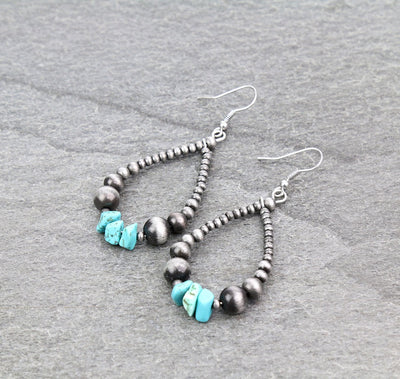 Jessica Fashion Navajo & Turquoise Chip Stone Teardrop Earrings