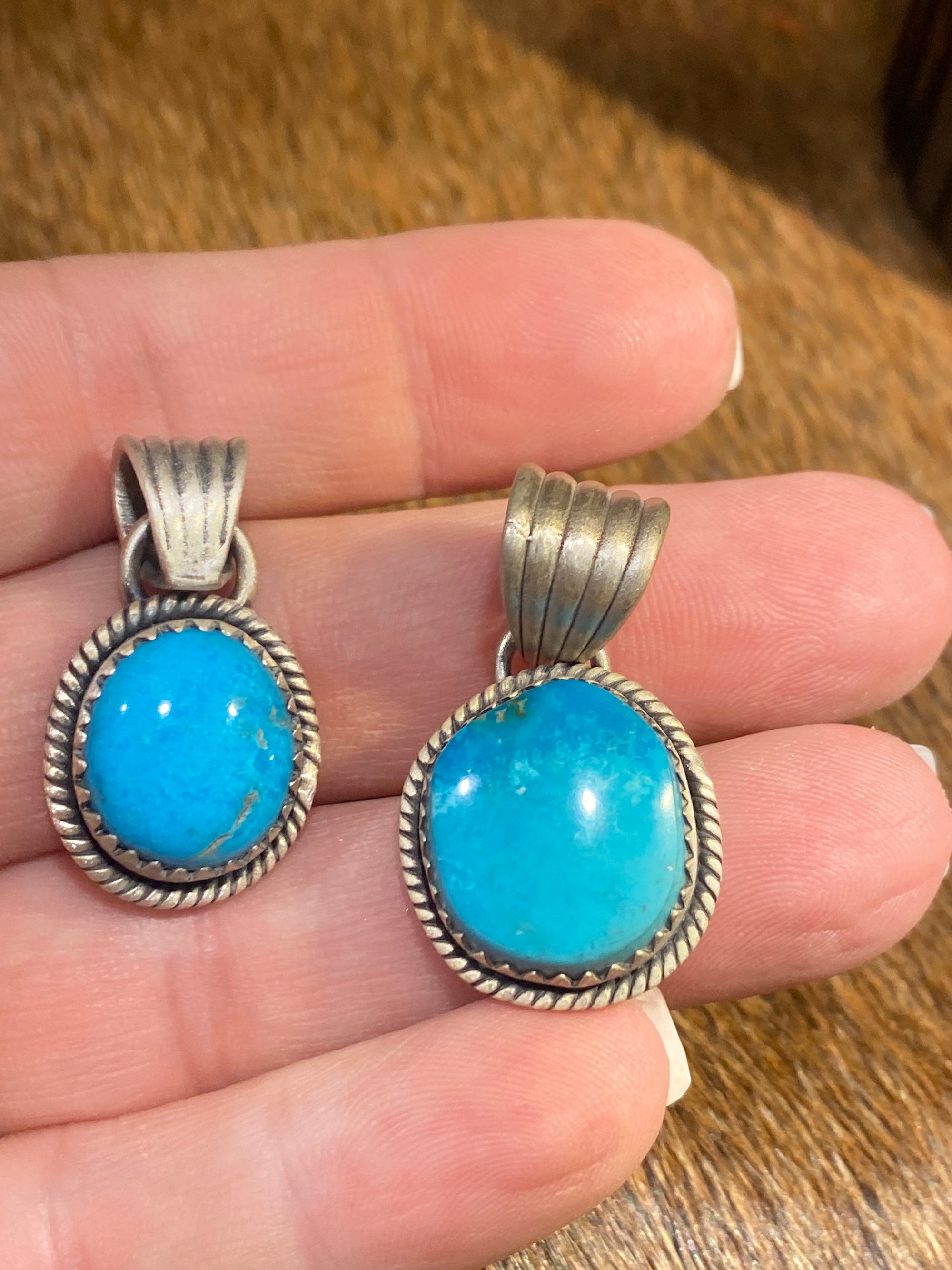 Kenner Roped Sterling Saw Edge Single Stone Turquoise Pendant